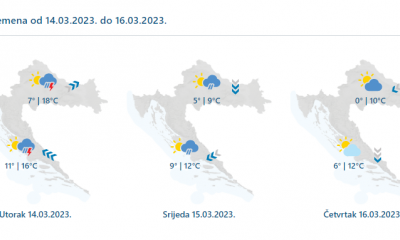 Danas promjenjivo oblačno sa sunčanim razdobljima, mjestimice malo kiše ili poneki pljusak, na jugu moguće i praćen grmljavinom. U gorju moguće malo susnježice ili snijega. Ponajmanje...
