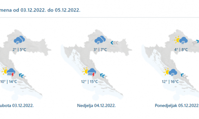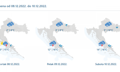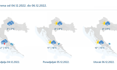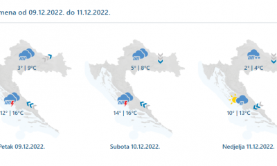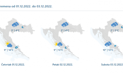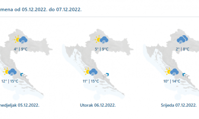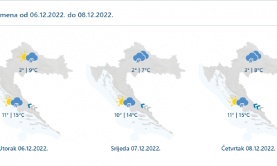 Danas će prevladavati oblačno, mjestimice s oborinom, češćom tijekom prijepodneva u unutrašnjosti. U nizinama će padati kiša i ponegdje susnježica, a u gorju snijeg. Na Jadranu...