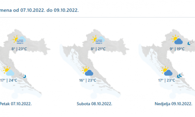 Danas pretežno sunčano, u drugom dijelu dana ponegdje uz umjerenu naoblaku. Ujutro će mjestimice biti magle i niskih oblaka, uglavnom u unutrašnjosti i na sjevernom Jadranu....