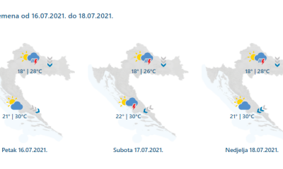 Na Jadranu danas pretežno sunčano. U unutrašnjosti promjenjiva naoblaka i ponegdje kiša, većinom u gorskim i središnjim predjelima. Poslijepodne lokalno izraženiji pljuskovi praćeni grmljavinom kojih vrlo...