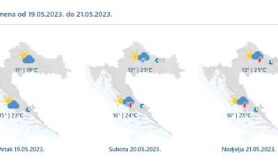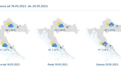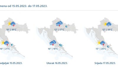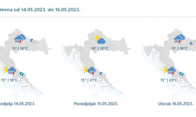 Danas umjereno i pretežno oblačno s povremenom kišom, osobito na Jadranu i uz njega obilnom, a mogući su i izraženi pljuskovi s grmljavinom. Vjetar slab i...