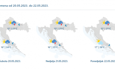 Danas promjenljivo, povremeno s kišom te pljuskovima praćenim grmljavinom. Oborina će biti češća u drugom dijelu dana, a lokalno može pasti veća količina kiše, osobito u...