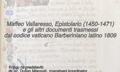 Teološko-katehetski odjel, Odjel za povijest Sveučilišta u Zadru i Društvo za povjesnicu Zadarske nadbiskupije – „Zmajević” pozivaju Vas na predstavljanje knjige „Maffeo Vallaresso, Epistolario (1450-1471) e...