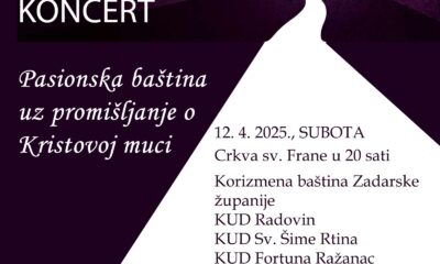 Korizmeni koncert u sklopu programa Županijski dani 2025. pod nazivom Korizmena baština Zadarske županije, održat će se u subotu, 12. travnja 2025. u crkvi sv. Frane u Zadru...