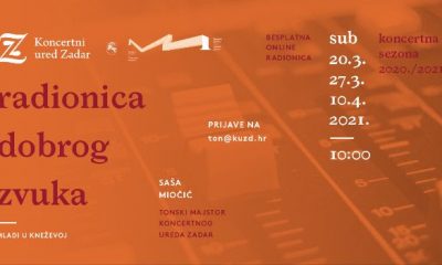 Koncertni ured Zadar organizira besplatne radionice dobrog zvuka koje će se održati putem platforme Zoom. Radionica je namijenjena svima koji žele naučiti više o zvuku, akustici...