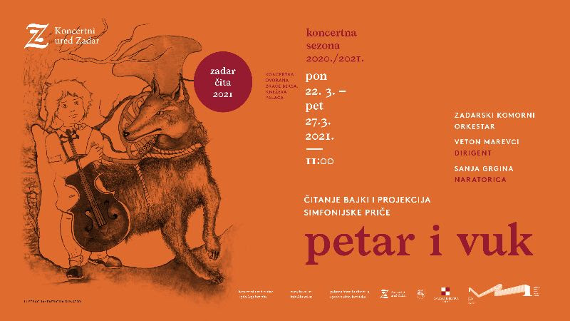 U okviru manifestacije Zadar čita, koju Gradska knjižnica Zadar održava od 2008. godine, Koncertni ured Zadar će na ovogodišnju središnju temu – pitanje “Zašto je dobro čitati bajke?” – odgovoriti organiziranom projekcijom simfonijske bajke Petar i vuk za djecu zadarskih vrtića. Riječ je o snimci koncerta održanog prošle godine u Hrvatskom narodnom kazalištu Zadar, kada je, u dvjema izvedbama pred gotovo devet stotina zadarske predškolske i školske djece, Zadarskim komornim orkestrom ravnao Veton Marevci, a u ulozi naratorice nastupila Sanja Grgina.