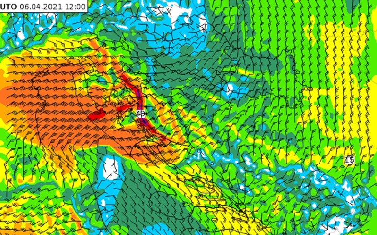 Prognostičari Državnog hidrometeorološkog zavoda izdali su za 6. travnja narančasto upozorenje za područje gospićke, riječke, splitske regije, zapadne obale Istre i cijele Dalmacije. Za područje Kvarnera i Kvarnerića i Velebitskog kanala izdano je crveno upozorenje.
