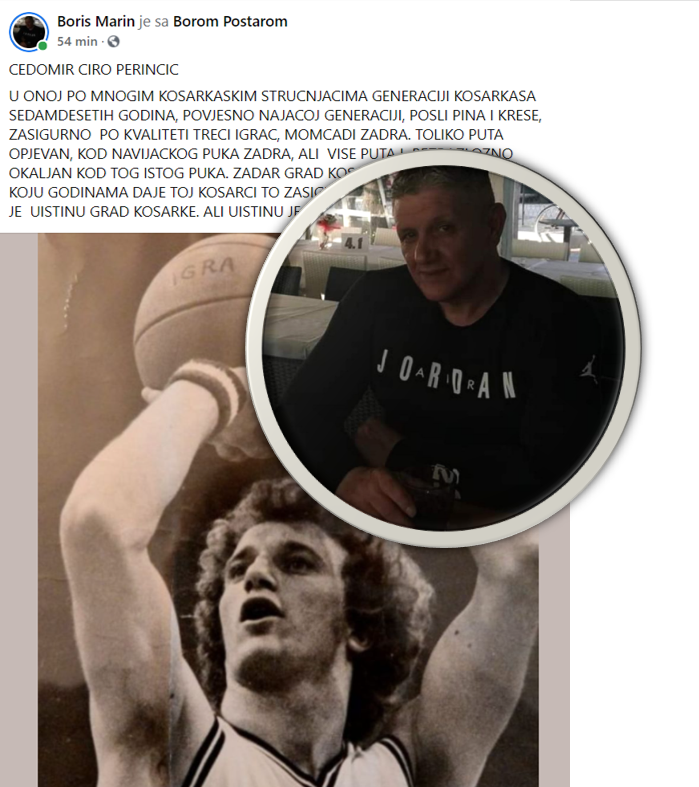 Još je jedna u nizu objava Zadranina Borisa Marina izazvala iznimnu pažnju na društvenim mrežama. Ovog puta, njegov je tekst upućen Čedmiru Čedi Perinčiću, i u nastavku ga u cijelosti prenosimo: