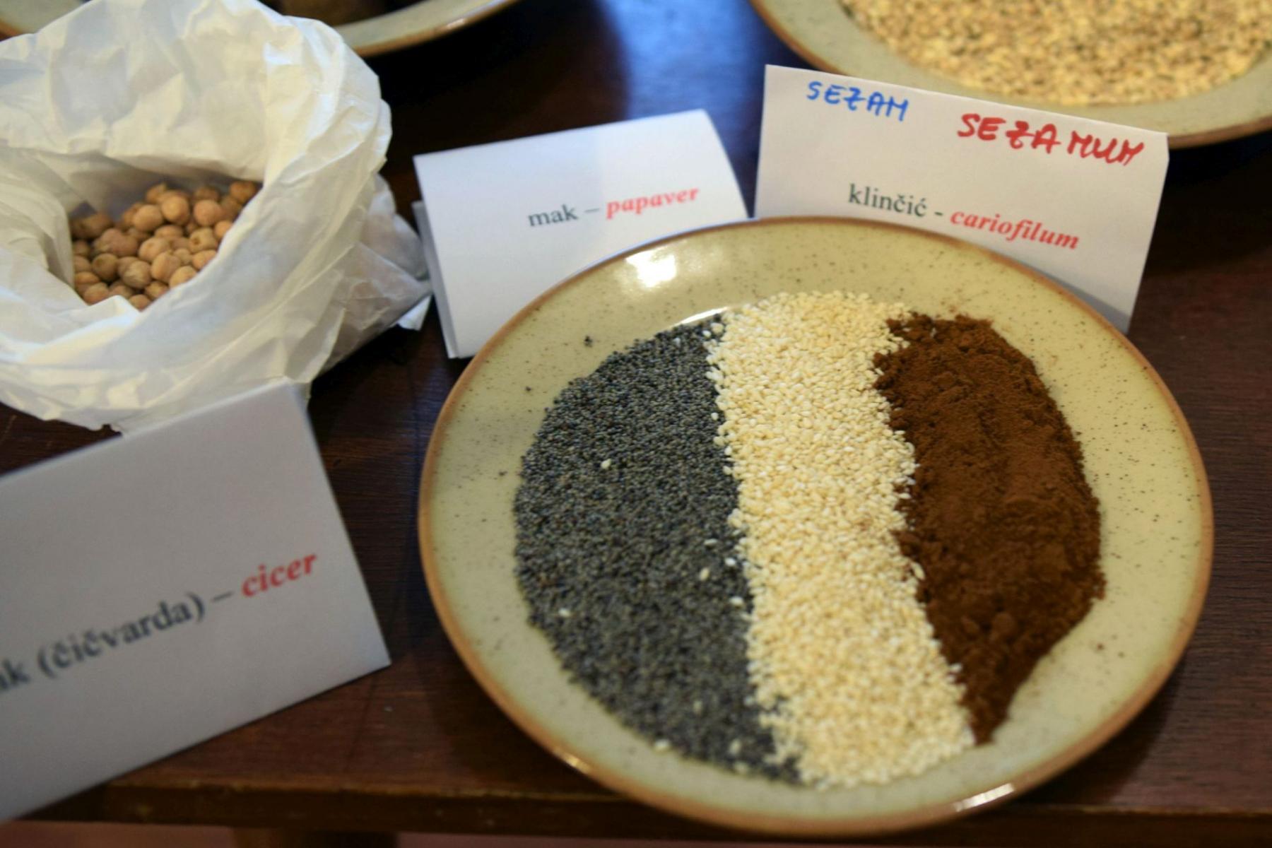Učenica Michelle Vukinović objasnila je kako su ljudi u antici koristili dosta začina, a najpopularniji je bio garum, koji se stavljao i na slatka i slana jela. Radio se od usitnjenih srdela, koje su fermentirale na suncu i na kraju pretvorene u pastu.
