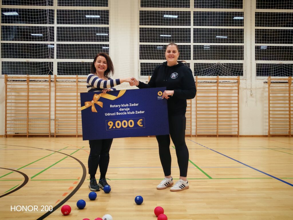 Rotary klub Zadar uručio je donaciju u iznosu od 9.000 eura Boccia klubu Zadar, prikupljenu tijekom dobrotvornog božićnog koncerta održanog krajem prošle godine. Nakon podmirenja organizacijskih troškova, cjelokupan iznos usmjeren je na podršku radu kluba i njegovim članovima.