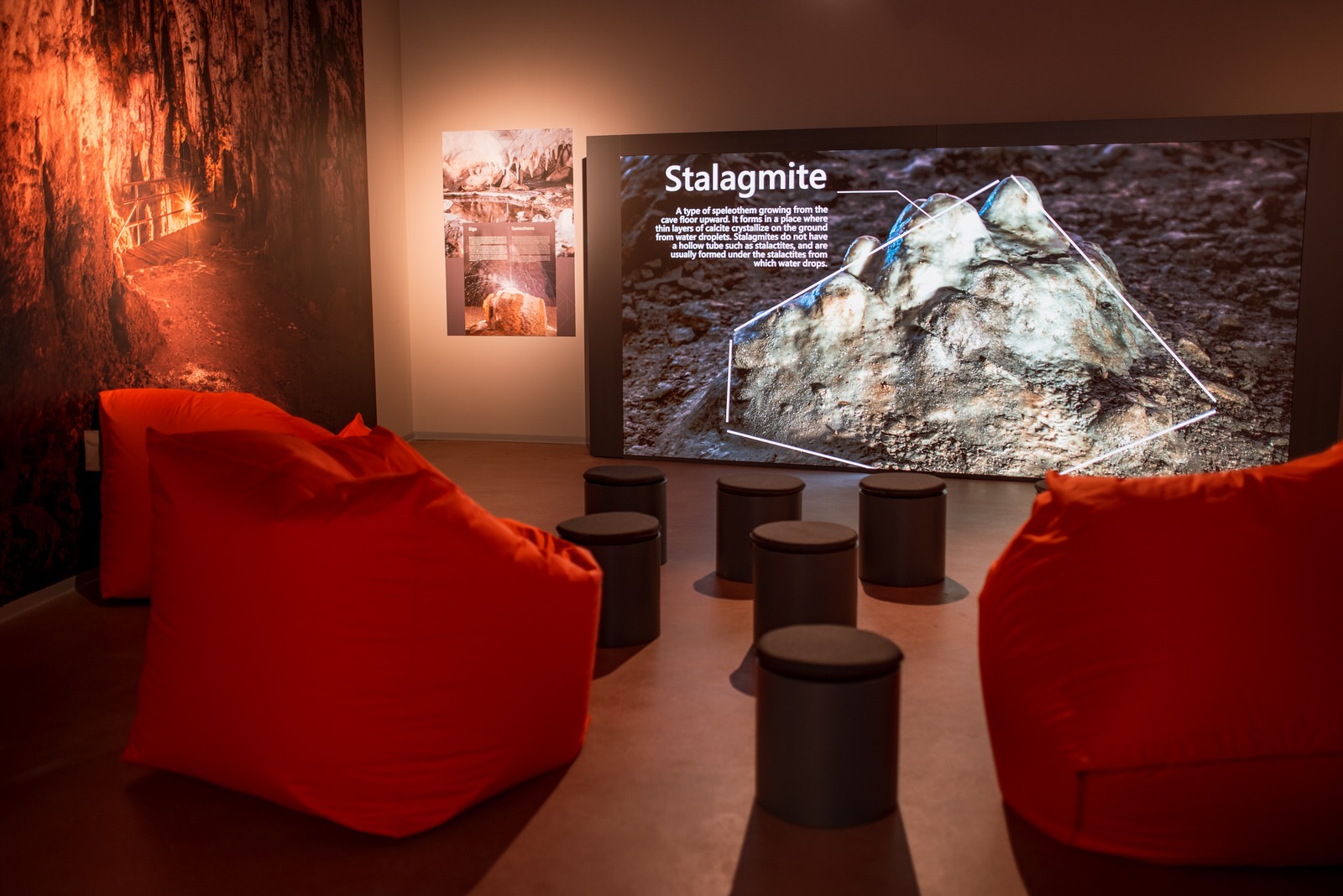 Čitav postav popraćen je nizom suvremenih, multimedijalnih modela interpretacije kao što su maketarski prikazi, LCD ekrani, smartglass, replike, animacije te multitouch ekrani. Posjetiteljski centar pored stalnog postava sadrži i multifunkcionalnu dvoranu, dječju igraonicu, speleo – dokumentacijsku knjižnicu, ugostiteljski sadržaj, suvenirnicu, depo te parkiralište.