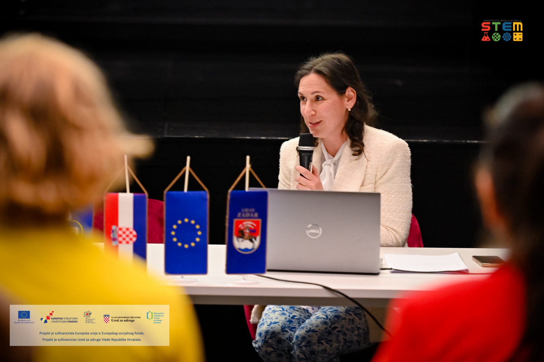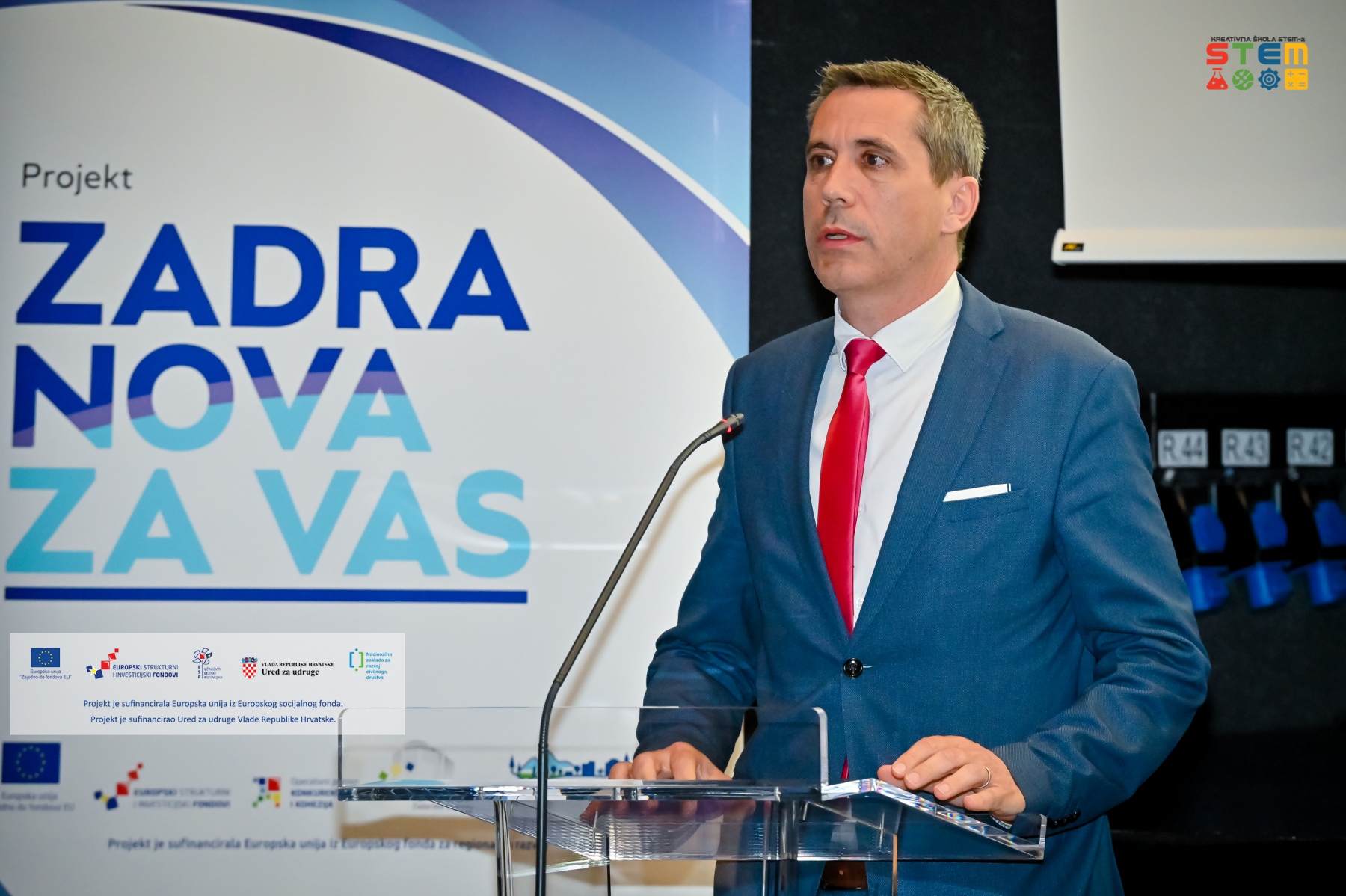 Prisutne je pozdravio i Ivan Šimunić, pročelnik Upravnog odjela za obrazovanje, kulturu i šport iz Zadarske županije, ujedno i projektni partner. Istaknuo je kako je projekt Kreativna škola STEM-a izvrstan primjer primjene STEM pristupa i vještina obuhvaćenih u jedinstvenu cjelinu – ciklus edukacije u kojem su organizacije civilnoga društva te djeca i mladi imali priliku steći znanja i vještine kroz praktičan rad u suradnji s IT stručnjacima i suradnicima iz različitih područja znanosti i tehničke kulture. Mišljenja je kako su projektom ostvareni izvrsni rezultati koji se odnose na nabavu suvremene, vrijedne opreme, provedbu radionica za ciljnu skupinu te uspostavu kreativnih sadržaja i alata. U budućnosti će Zadarska županija, potaknuta ovim dragocjenim iskustvom i dalje svesrdno podržavati nove projekte Zajednice.