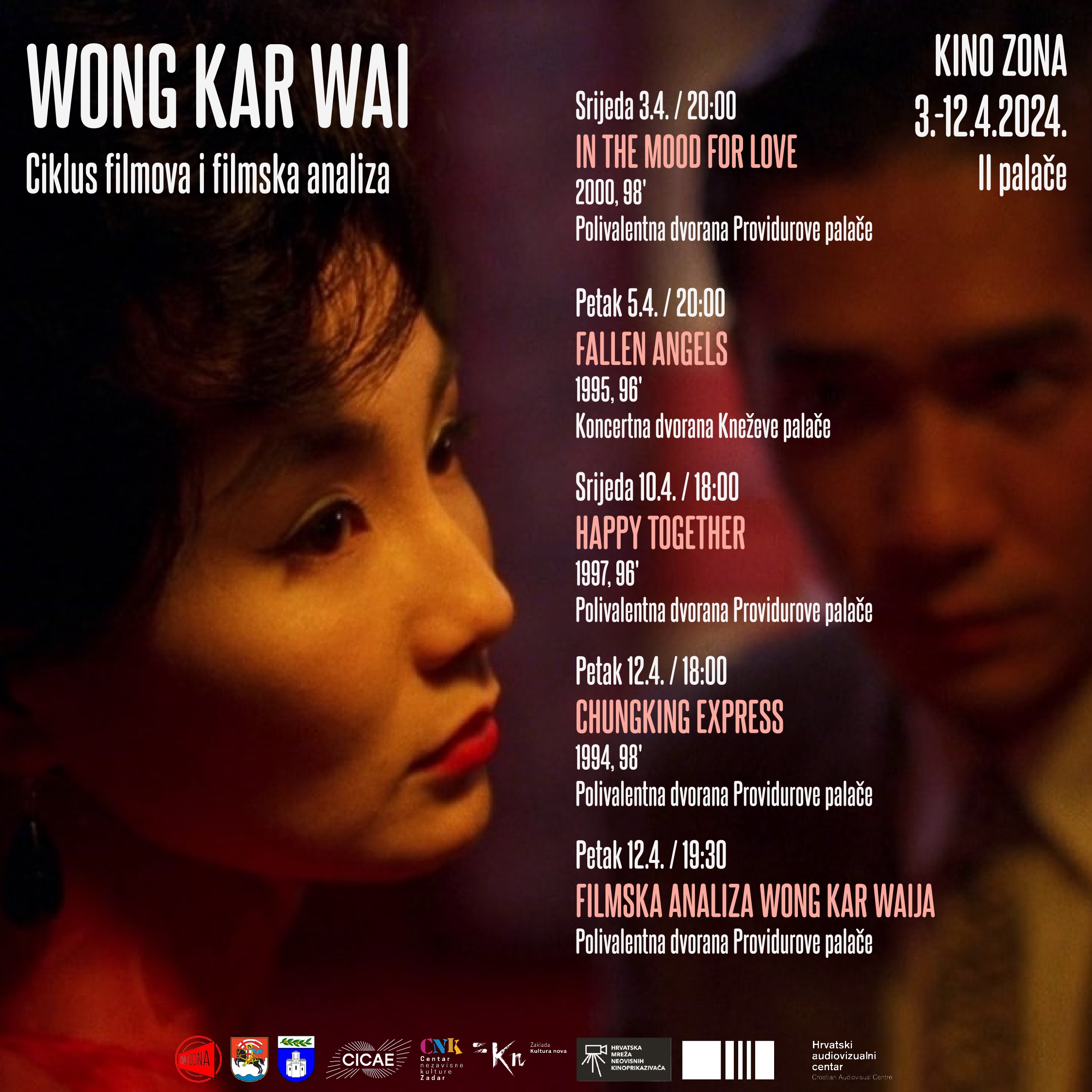 U mjesecu travnju Kino Zona je za vas pripremila novi niz vrhunskih ostvarenja, ali i jedan poseban ciklus filmova s kojim odajemo počast jednom od najistaknutijih redatelja današnjice, veličanstvenom Wong Kar-waiju! Naše travanjsko filmsko putovanje započet ćemo upravo s njegovim najpoznatijim filmom, maestralnom romantičnom dramom ”In the Mood For Love”!