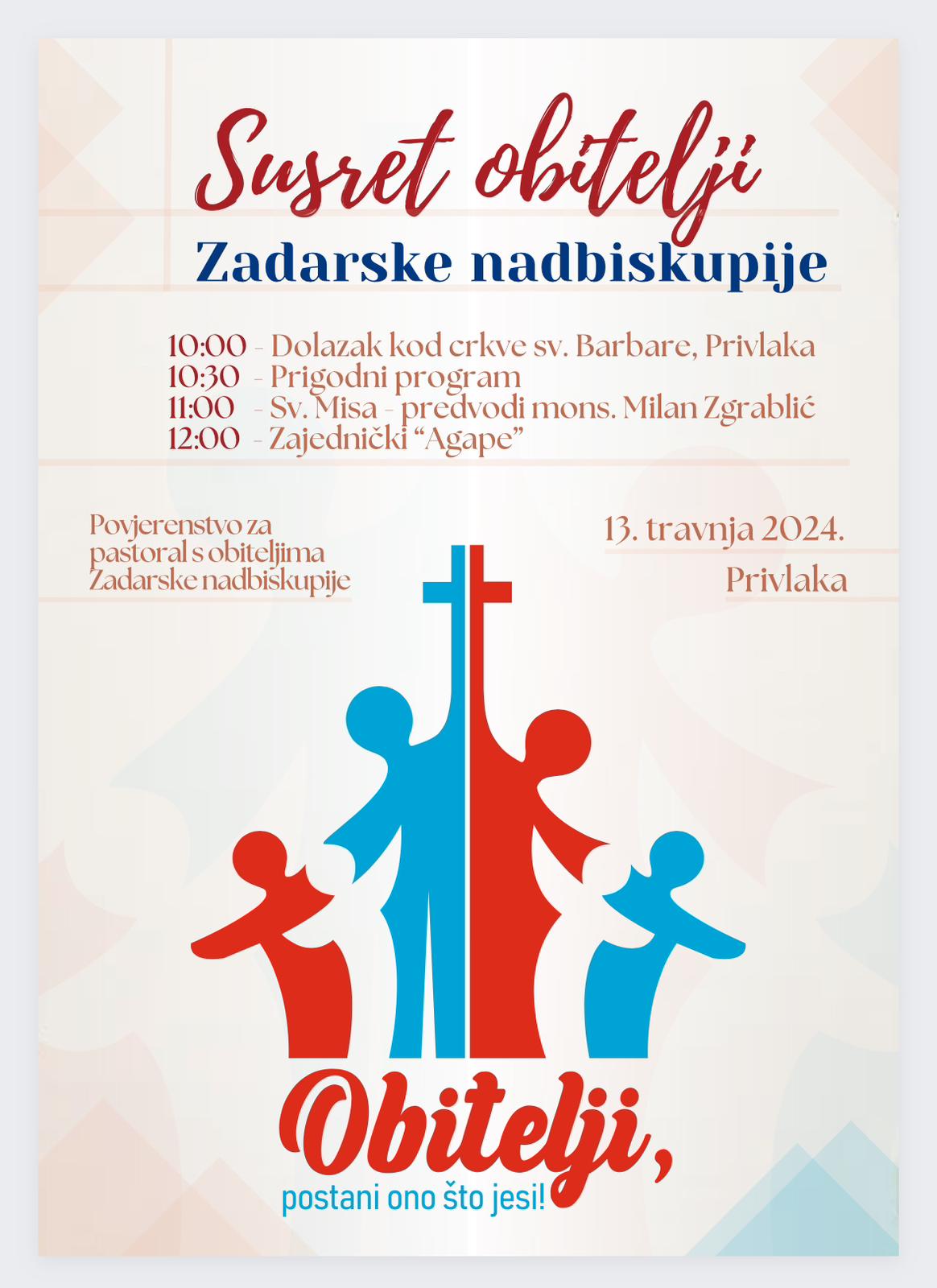 U subotu, 13. travnja u Privlaci – Susret obitelji Zadarske nadbiskupije