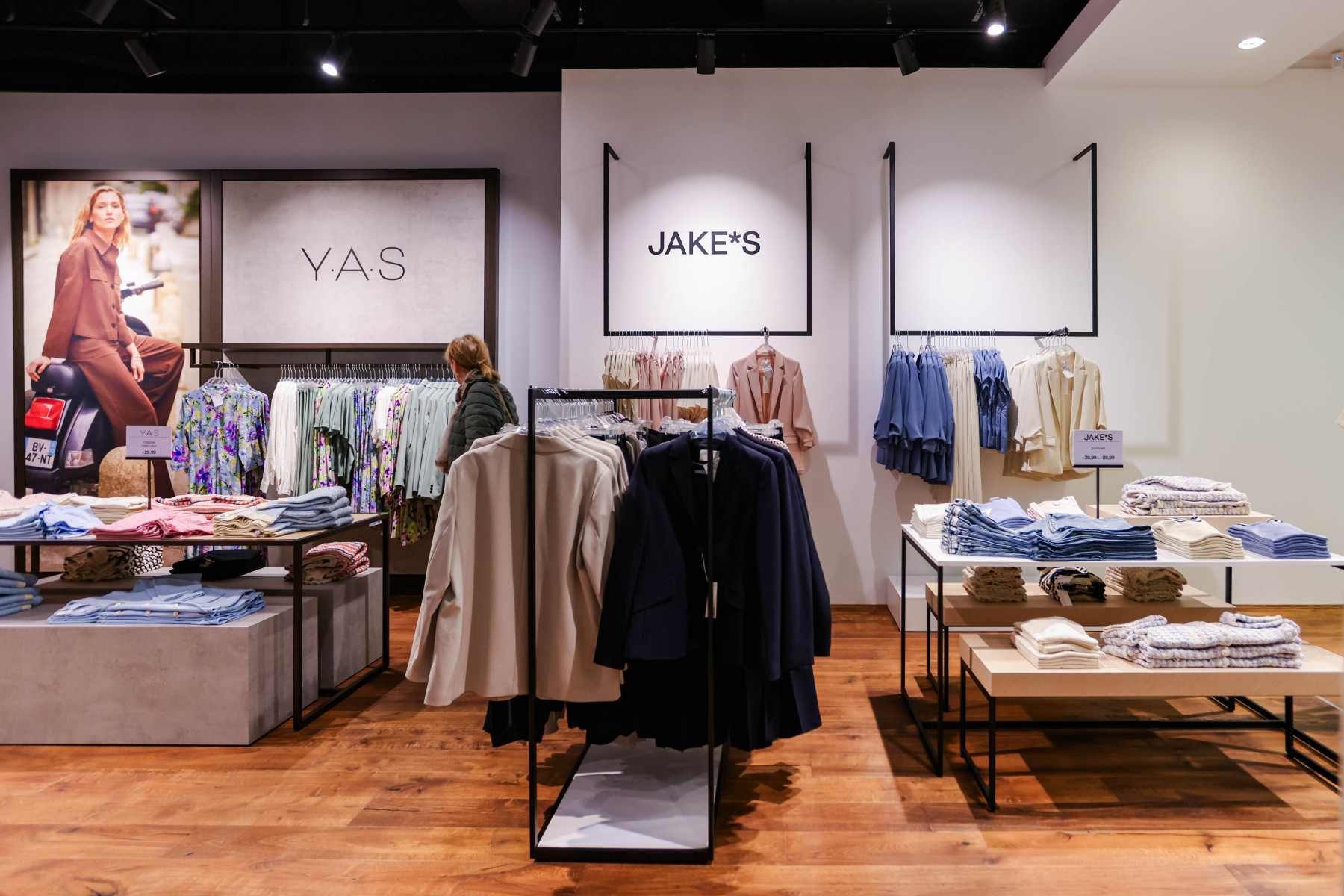 U novootvorenoj trgovini posjetitelji mogu birati između više od 100 renomiranih modnih brendova poput Polo Ralph Laurena, Tommy Hilfigera i Boss Blacka. Poseban naglasak stavljen je na ekskluzivni brend Jake*s, koji svojim raznovrsnim kolekcijama donosi moderne i sofisticirane stilove za svaku priliku. Za sve koji traže savršen outfit za posebne prigode, trgovina nudi i besplatnu uslugu osobnog stilista. U opuštenoj atmosferi, P&C modni stručnjaci posvećuju se kupcima, pružajući personalizirane savjete o veličinama, stilskim preferencijama i bojama.
