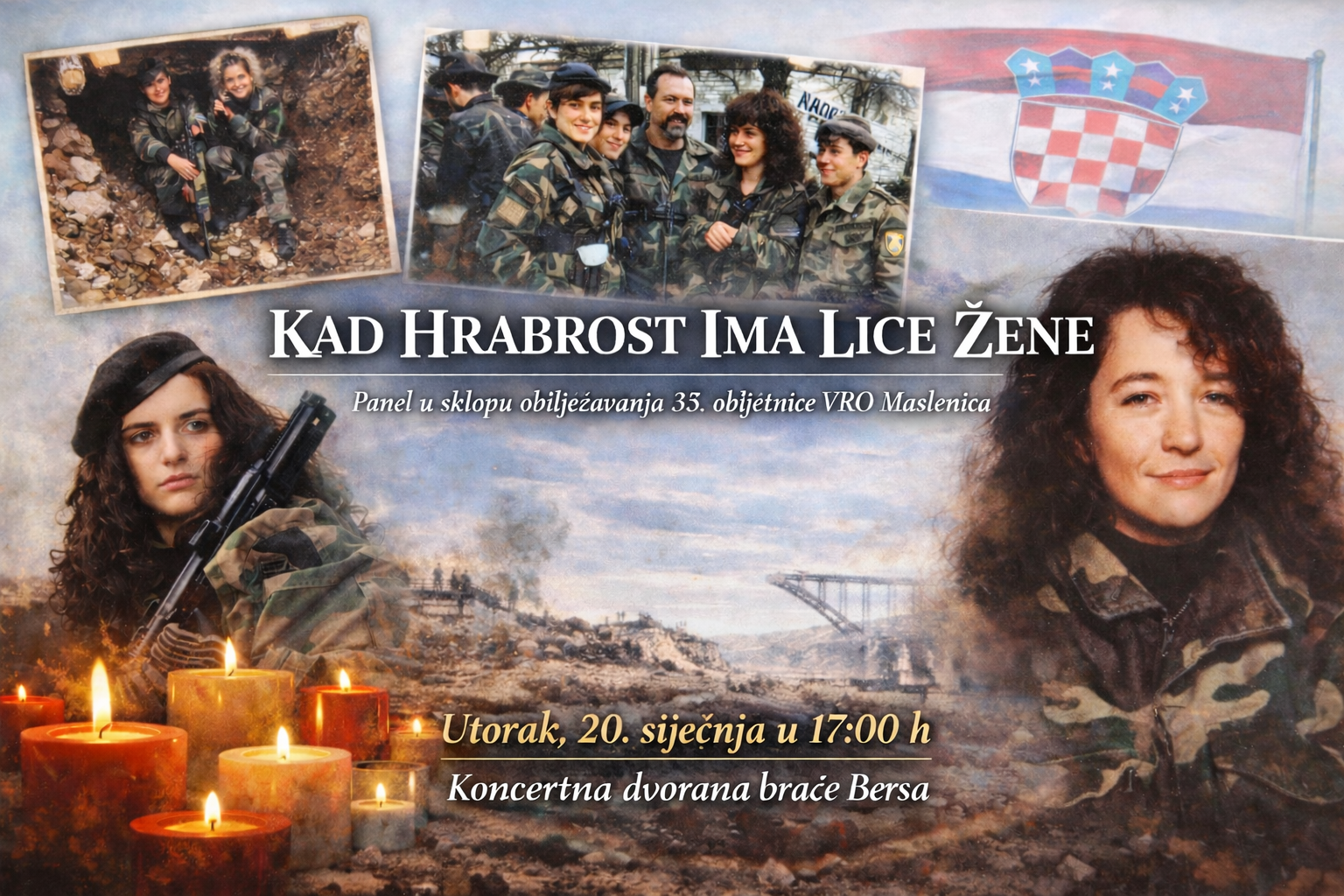 U sklopu programa obilježavanja 33. obljetnice VRO Maslenica, u utorak, 20. siječnja u 17 sati, u Koncertnoj dvorani braće Bersa, održat će se panel „Kad hrabrost ima lice žene“, posvećen ženama sudionicama Domovinskog rata.