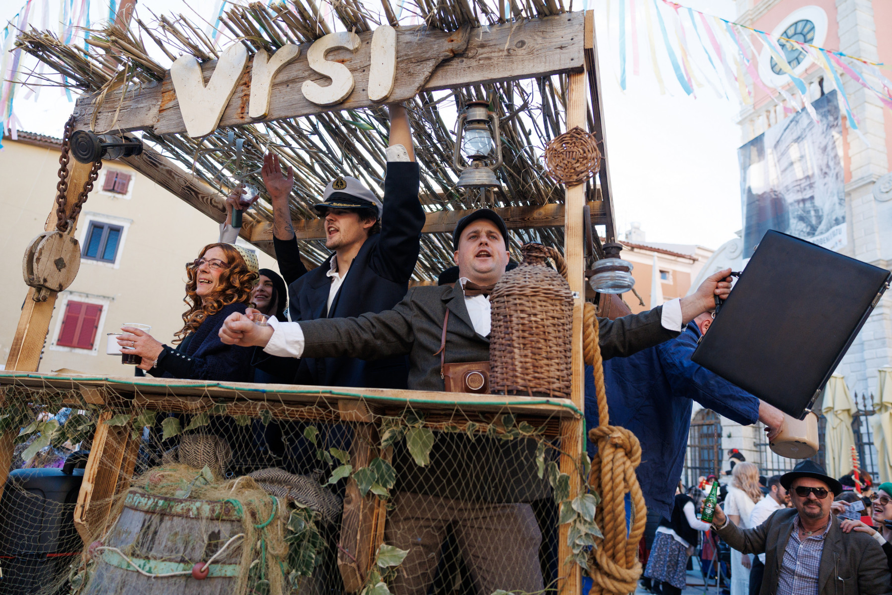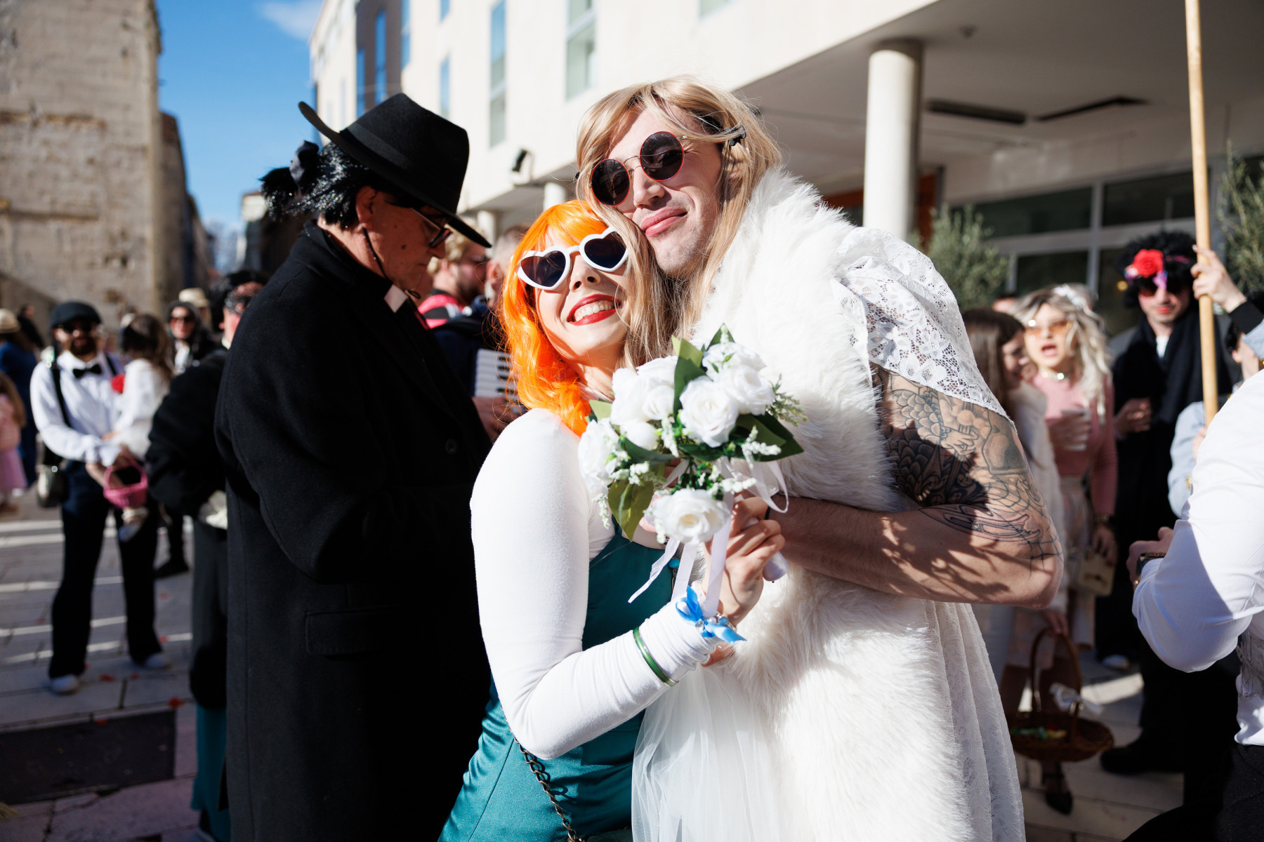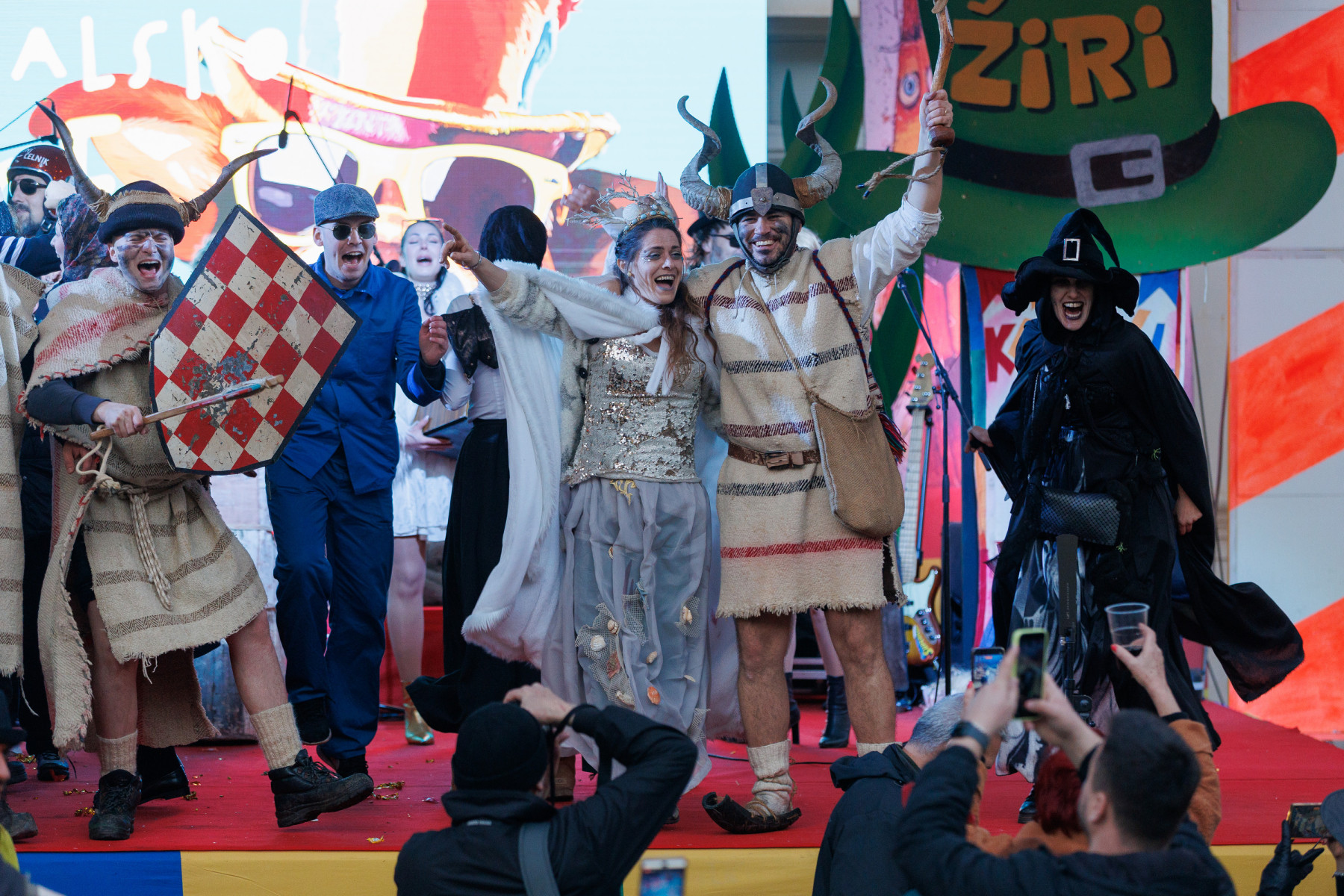 Na pozornici pred zgradom vijećnice palo je i prvo vjenčanje veselih svatova sa Stanova koji su sa sobom doveli svećenika, ali i Maju Šuput koja zvuči bolje nego prava. Pravi show napravila je ekipa iz Vrsi čije je Vrime munještine donijelo i vrške štrige i božicu mora, ali i cijeli pub koji se otvara kraj crkve. Sa stolovima i ekipom koja na njima igra na karte. Doveli su čak i svog meštra tako da je čak i Štorić mogao malo predahnuti. Nakon zombija iz KUD-a Mrtovnjak i Škure tramontane, povorku su zaokružile maškare iz Pakoštana koje na trg dovezao rasklimani autobus firme Krstić, naravno uz legendarni zvuk iz filma „Ko to tamo peva”.