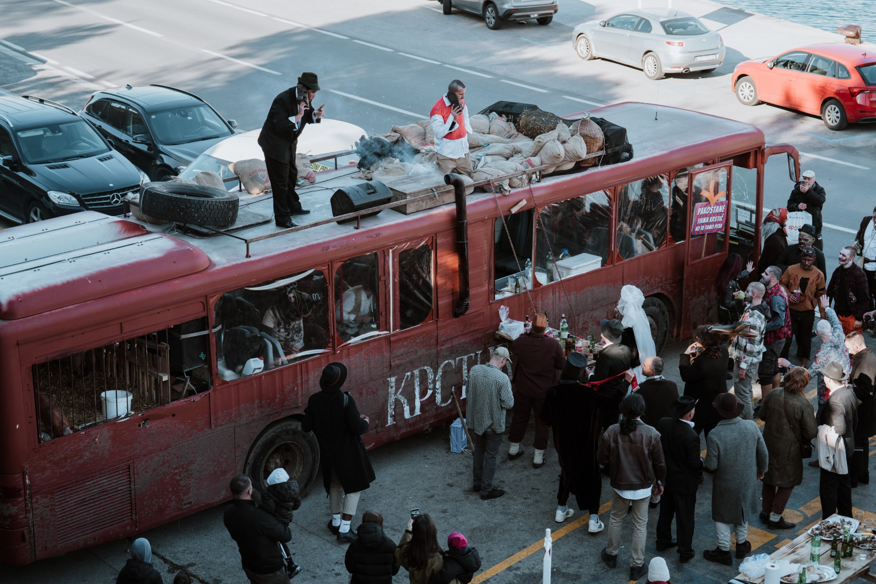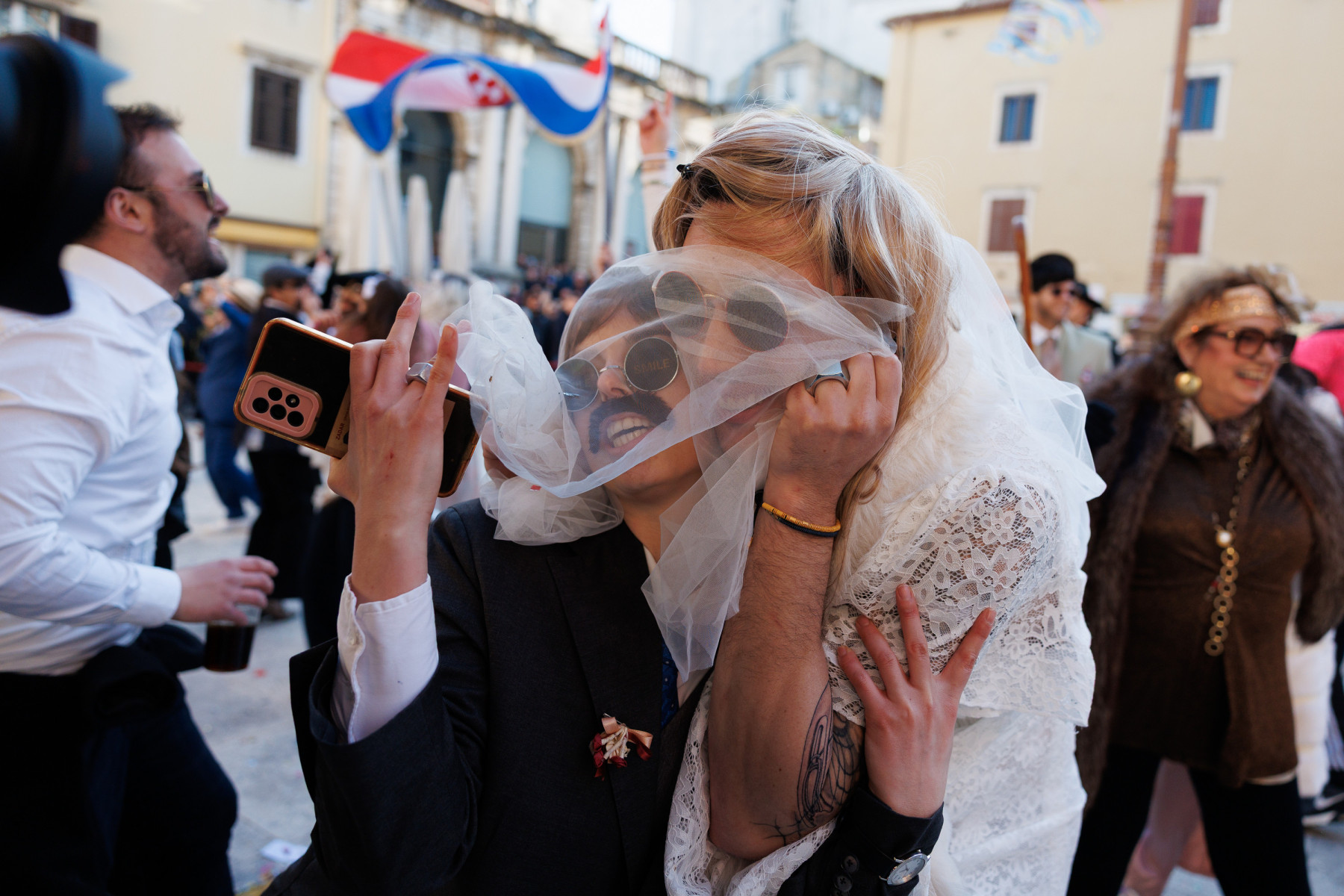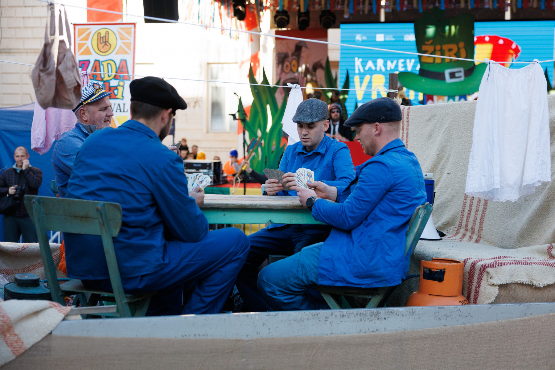 Na pozornici pred zgradom vijećnice palo je i prvo vjenčanje veselih svatova sa Stanova koji su sa sobom doveli svećenika, ali i Maju Šuput koja zvuči bolje nego prava. Pravi show napravila je ekipa iz Vrsi čije je Vrime munještine donijelo i vrške štrige i božicu mora, ali i cijeli pub koji se otvara kraj crkve. Sa stolovima i ekipom koja na njima igra na karte. Doveli su čak i svog meštra tako da je čak i Štorić mogao malo predahnuti. Nakon zombija iz KUD-a Mrtovnjak i Škure tramontane, povorku su zaokružile maškare iz Pakoštana koje na trg dovezao rasklimani autobus firme Krstić, naravno uz legendarni zvuk iz filma „Ko to tamo peva”.