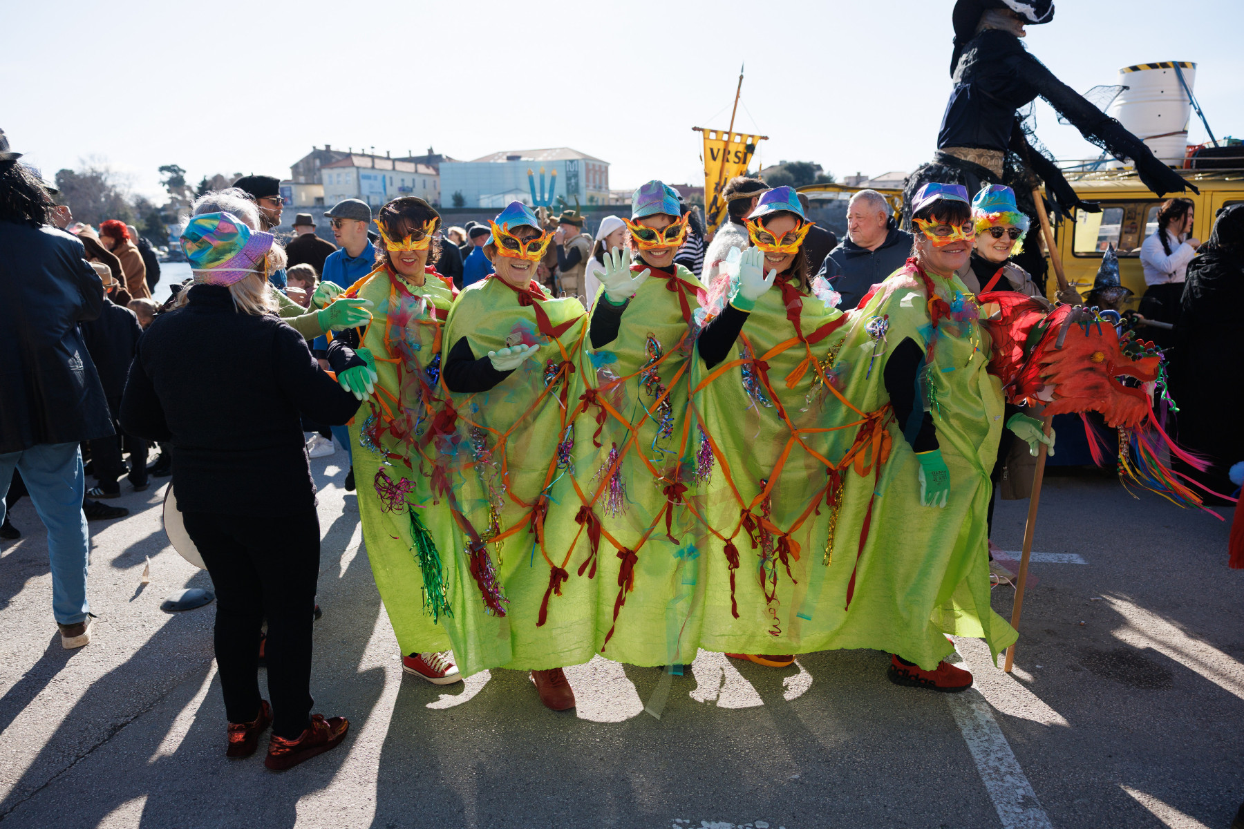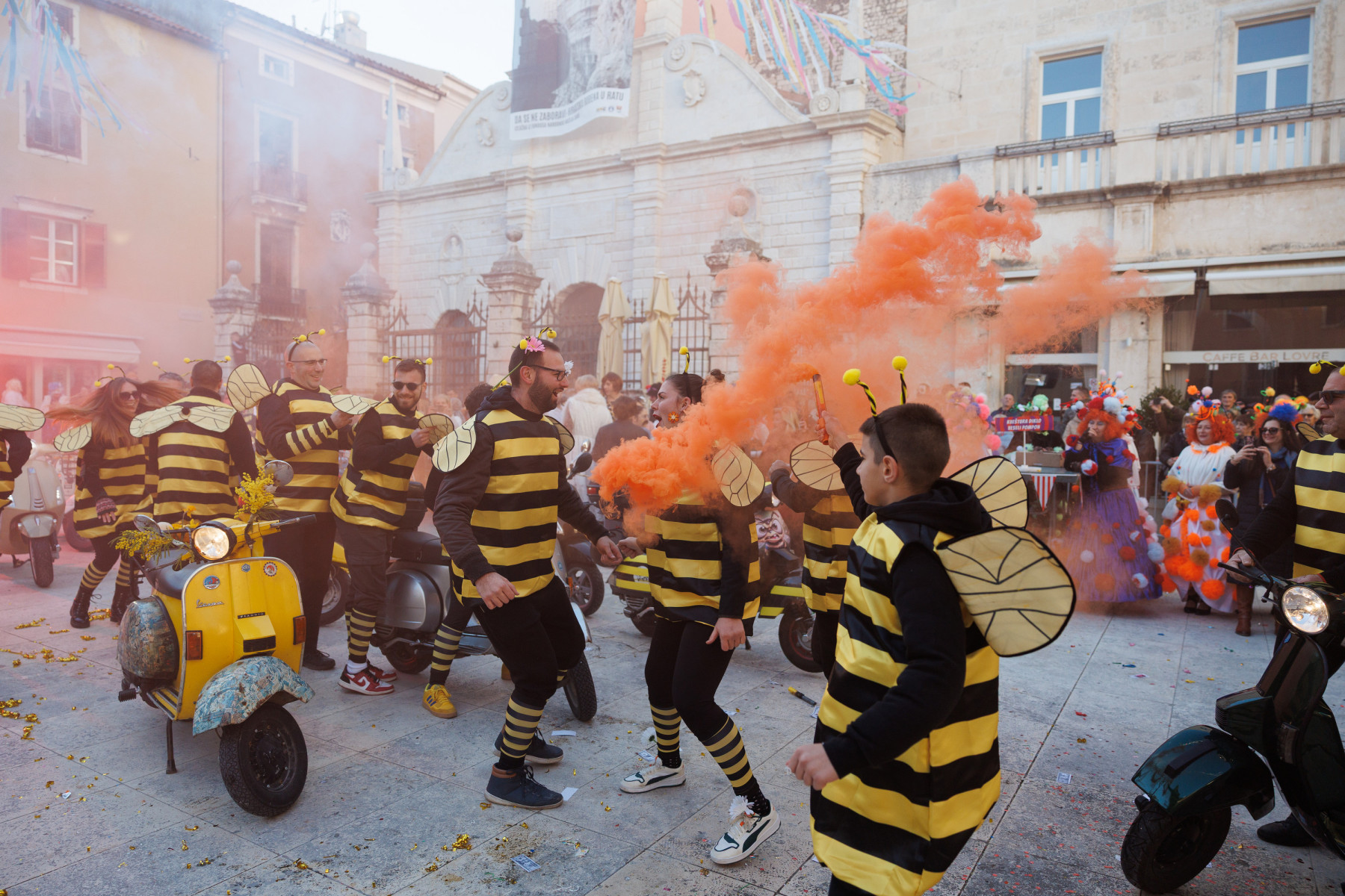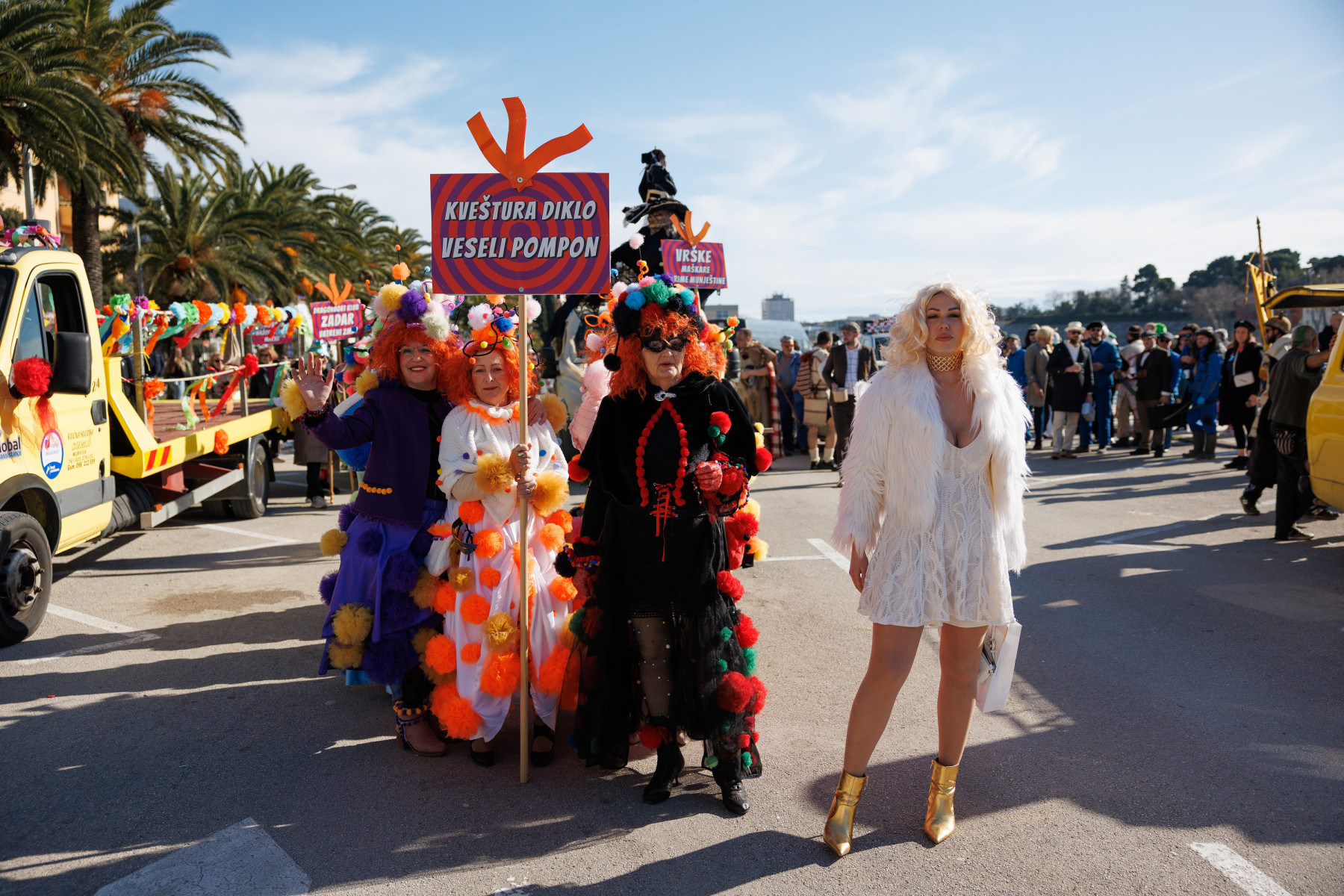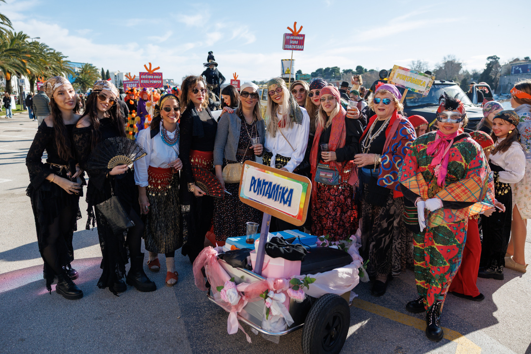 Članovi Vespa kluba Zadar zujalli su kao ose po trgu, karnevalska udruga Puntamika predstavila se kao Romkinje, lije iz Aenone Nin dovele su sobom plastične kokoši, dok je skupina s Poluotoka snažnom simbolikom prikazala što znači biti Hrvatska žena – majka – kraljica.