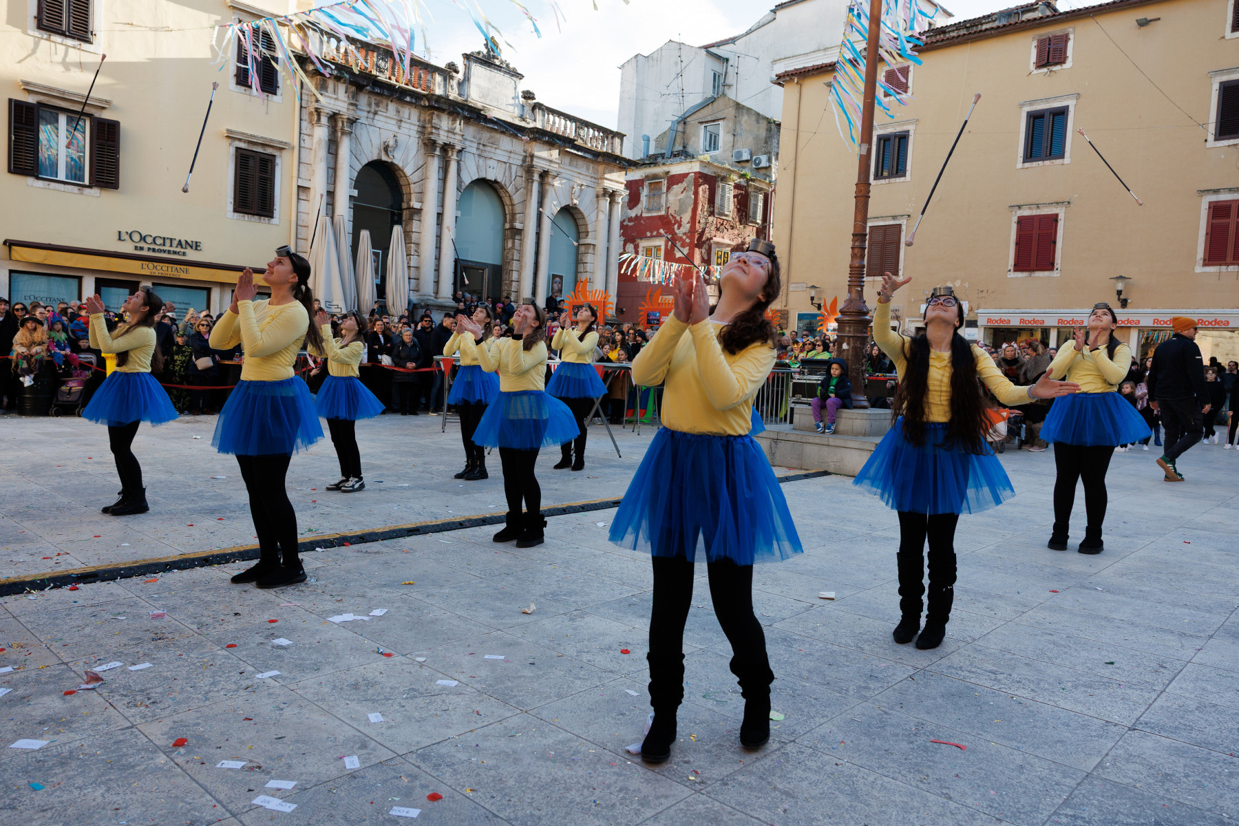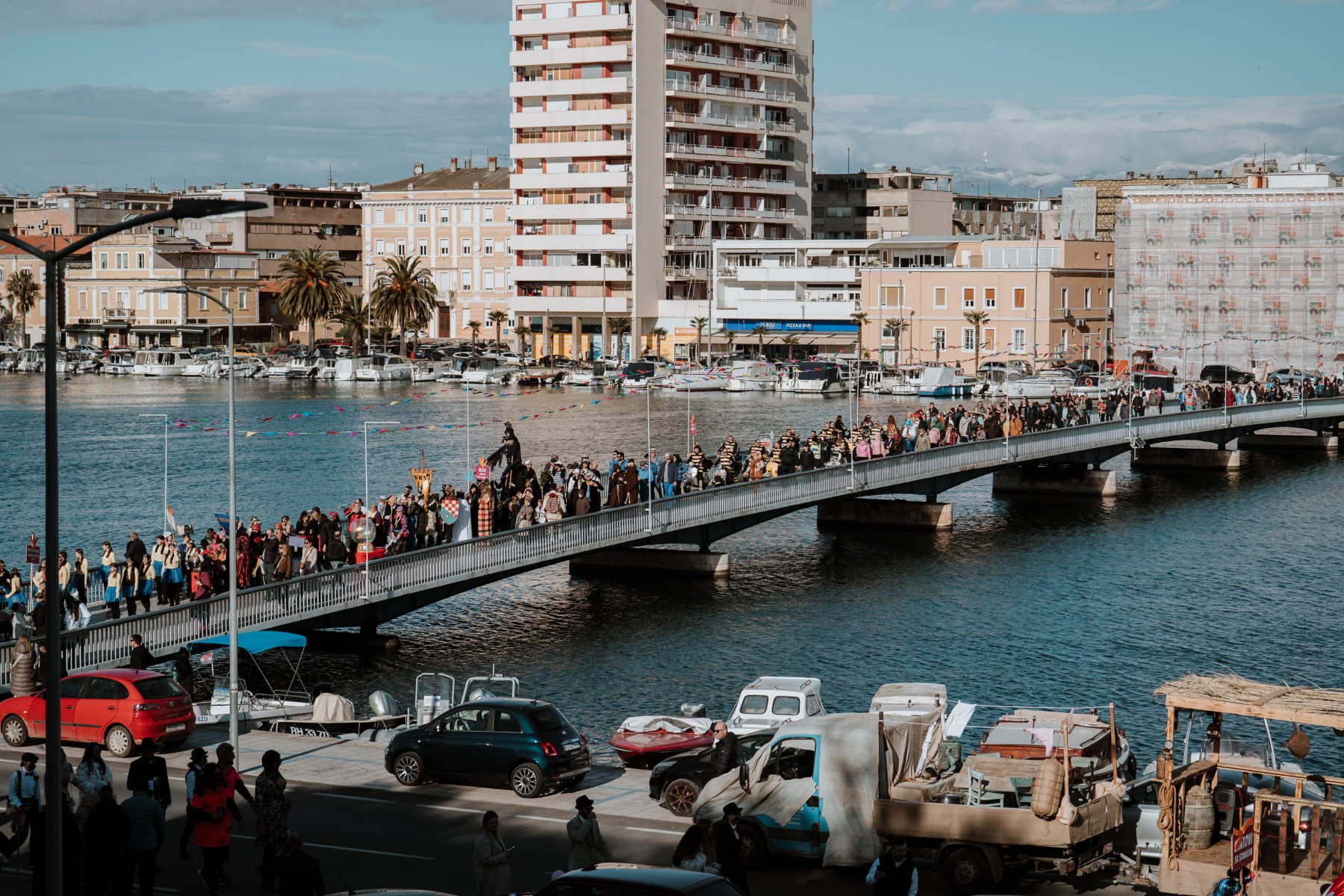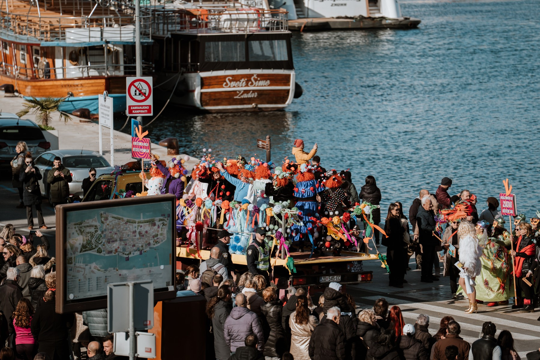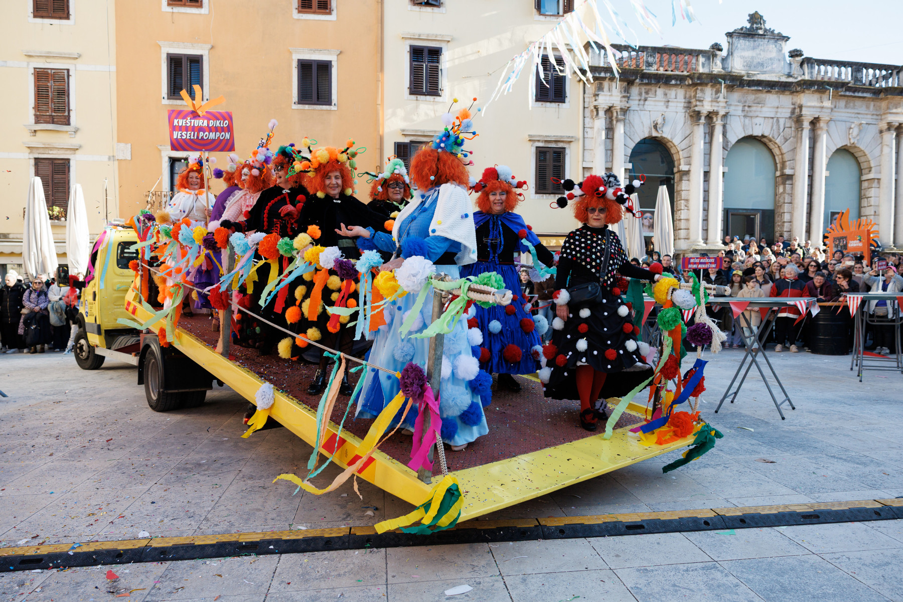 Članovi Vespa kluba Zadar zujalli su kao ose po trgu, karnevalska udruga Puntamika predstavila se kao Romkinje, lije iz Aenone Nin dovele su sobom plastične kokoši, dok je skupina s Poluotoka snažnom simbolikom prikazala što znači biti Hrvatska žena – majka – kraljica.