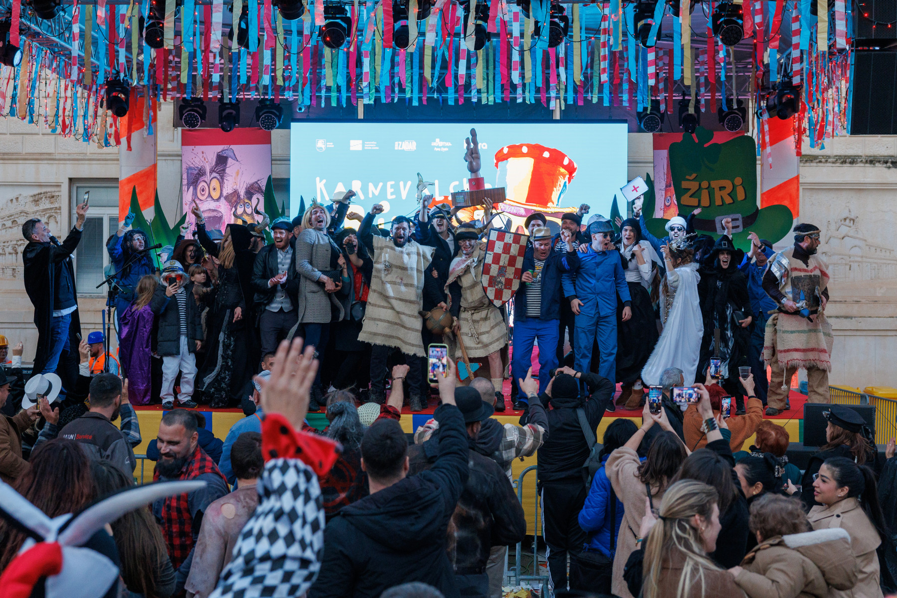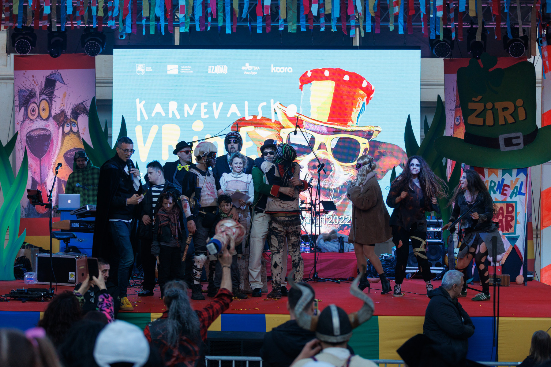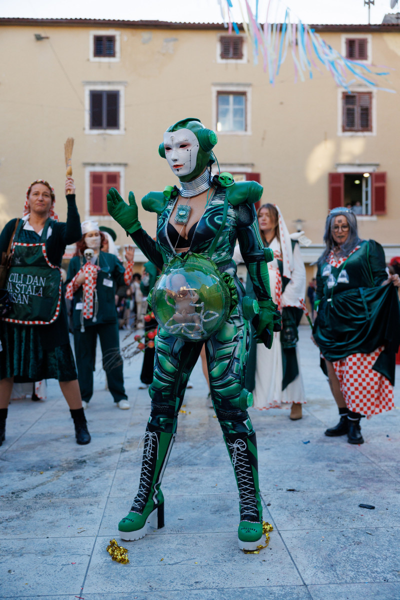 Vesela maškarana povorka uputila se ove nedjelje od Branimira preko mosta, duž Kalalarge sve do Narodnog trga gdje je danas održano finale zadarskog karnevala. A tamo ih je dočekao strogi ocjenjivački sud sklon potkupljivanju i malverzacijama te novi gradonačelnik Ivo Muzika čija je vladavina, otkako je preuzeo ključeve grada, naprosto oduševila i opravdala sva očekivanja. Korupcija je nikad veća, mulci s romobilima gaze penzionere po Bulevaru kako bi osvojili nadasve primamljive nagrade, skoro onakve za kakve se danas natjecalo natjecalo i 13 maškaranih skupina pred brojnom publikom. A bilo je tu svega. Zadarske mažoretkinje unijele su dašak elegancije kao Venecijanske maske plešući tradicionalni stari hrvatski ples mažoret, dok su njihove kolegice iz Benkovca zaigrano mijaukale kao mačke, a one pak iz Gospića razveselile publiku kostimima popularnih Malaca.
