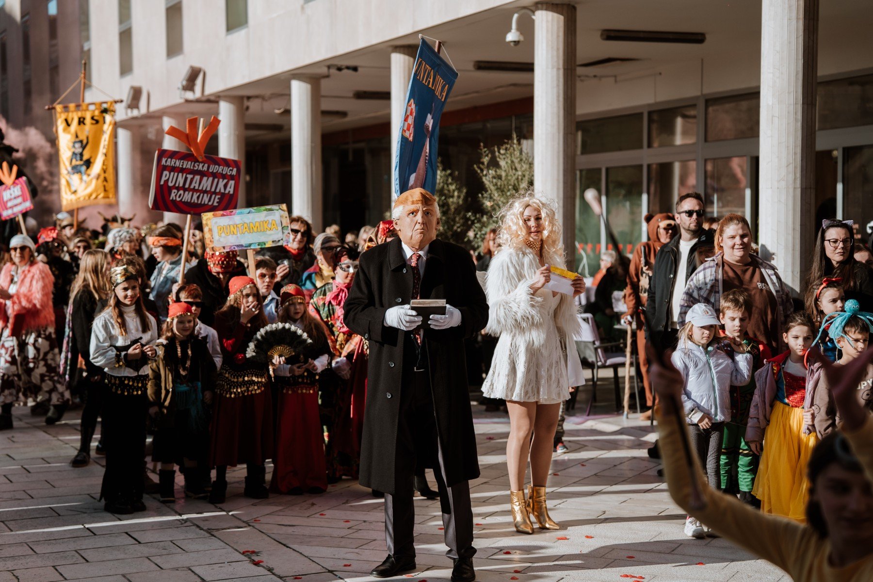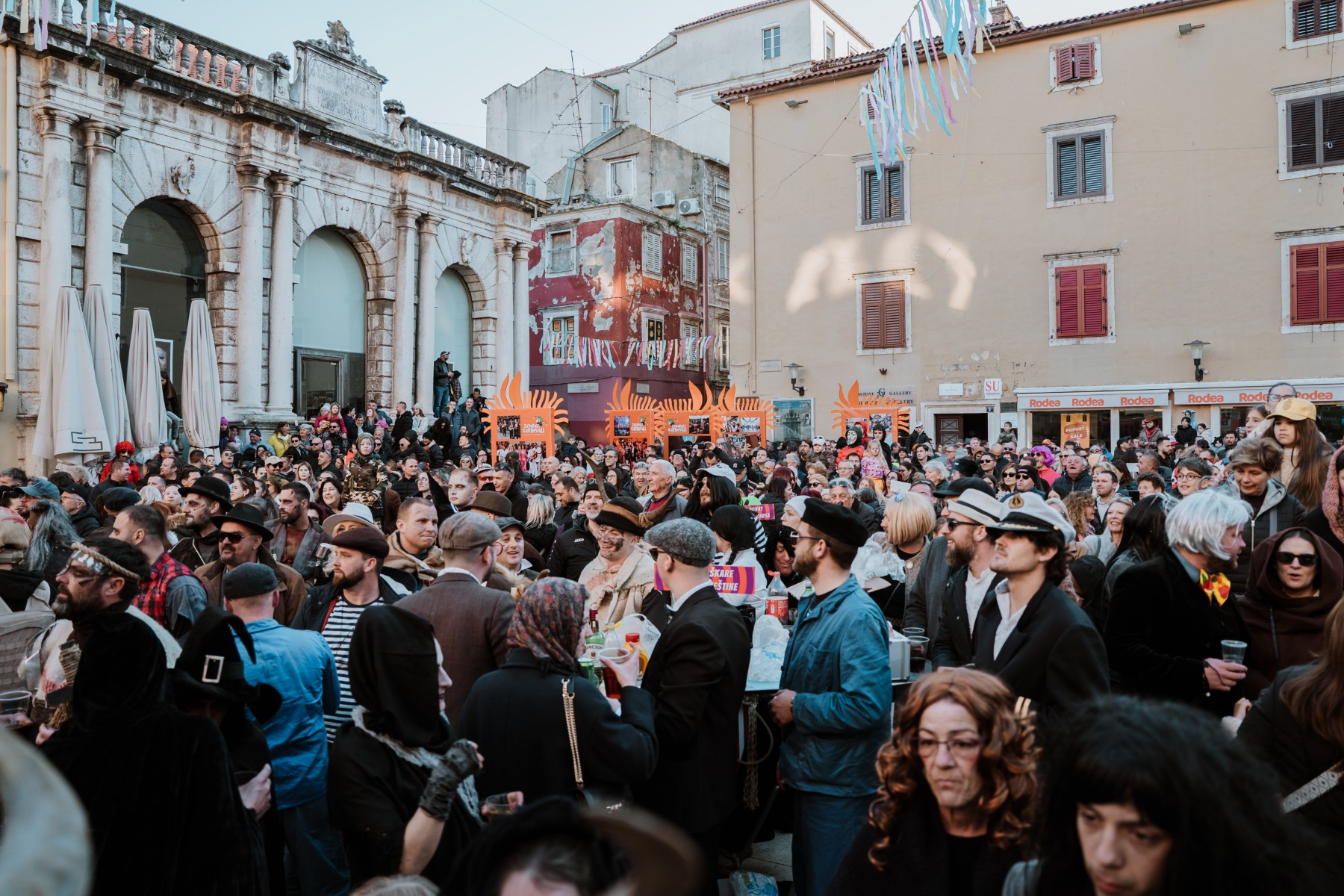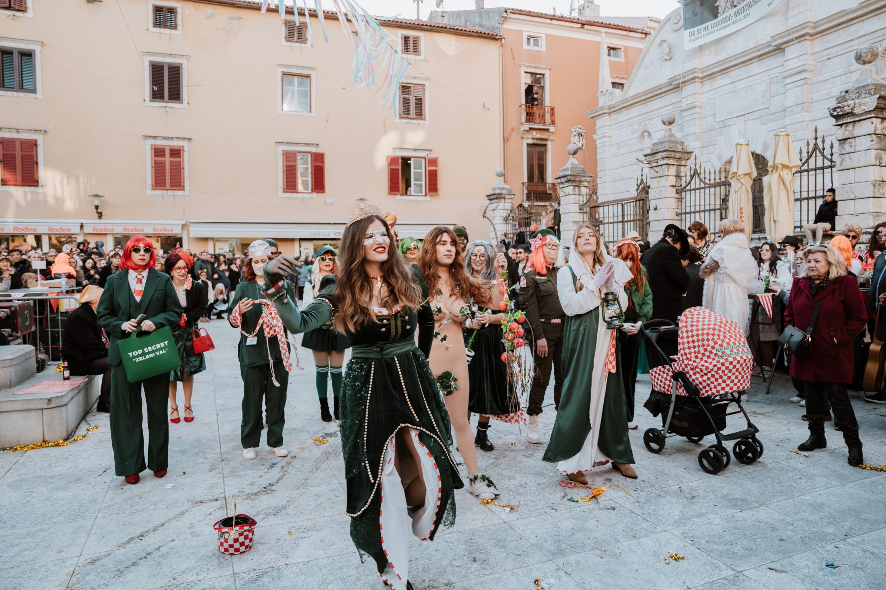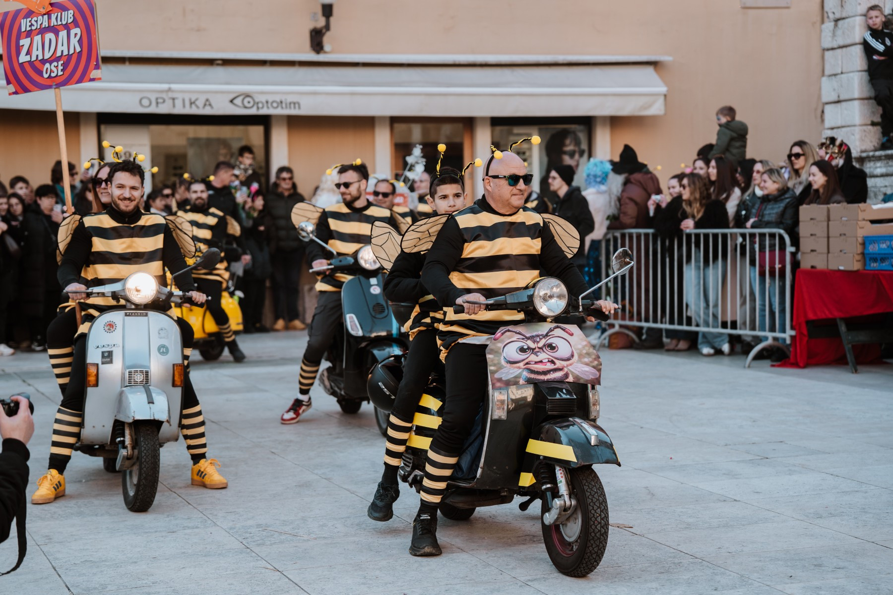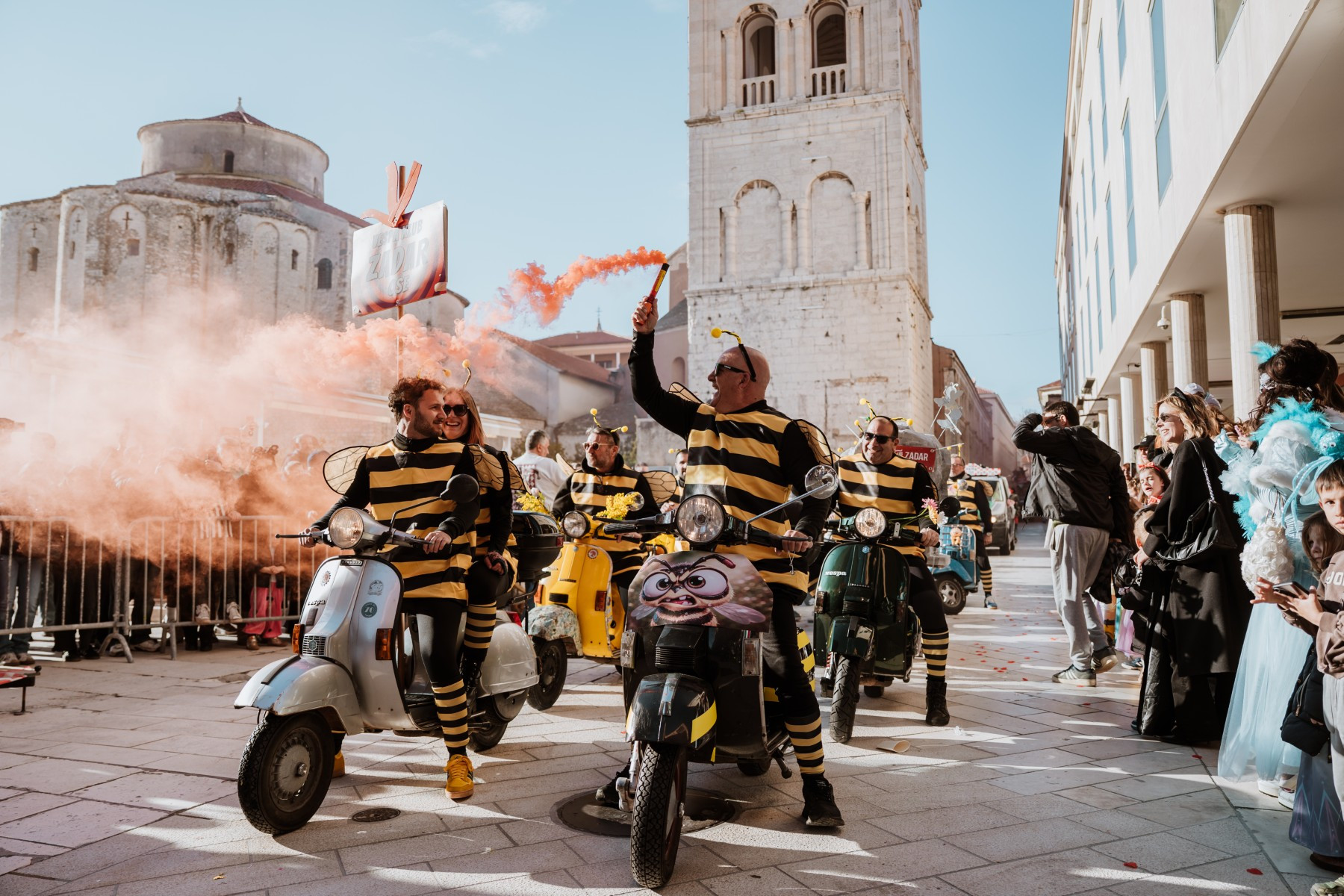 Članovi Vespa kluba Zadar zujalli su kao ose po trgu, karnevalska udruga Puntamika predstavila se kao Romkinje, lije iz Aenone Nin dovele su sobom plastične kokoši, dok je skupina s Poluotoka snažnom simbolikom prikazala što znači biti Hrvatska žena – majka – kraljica.