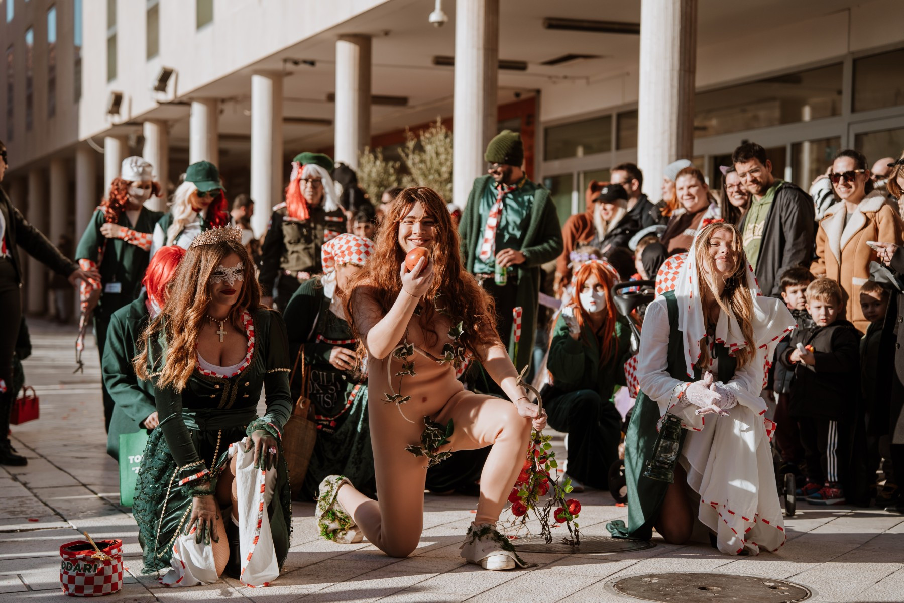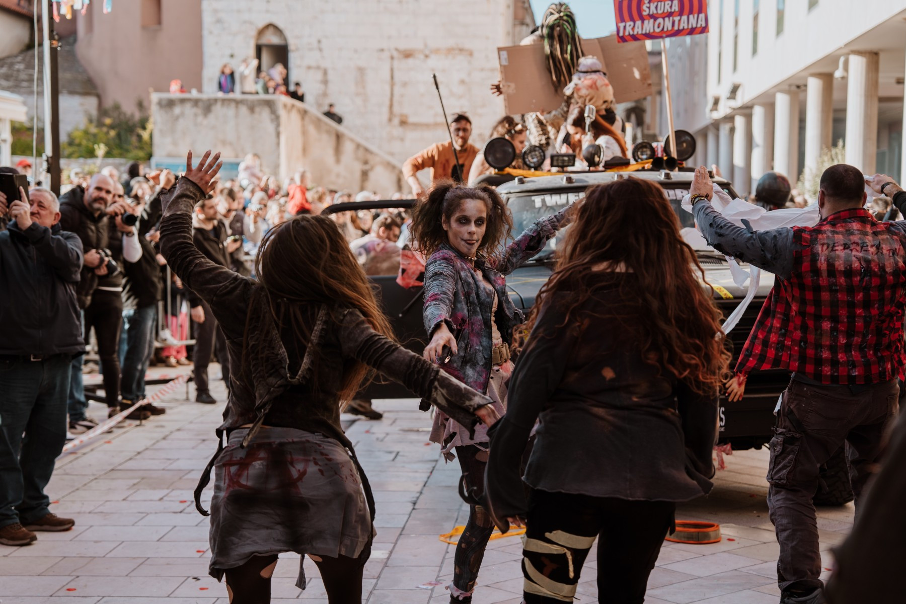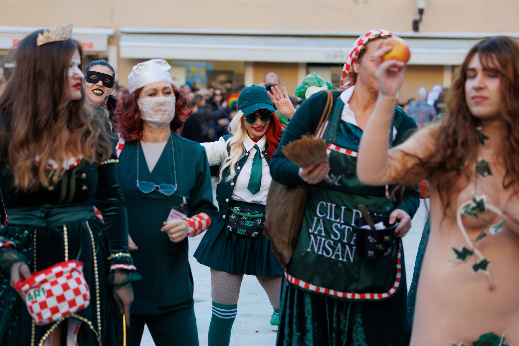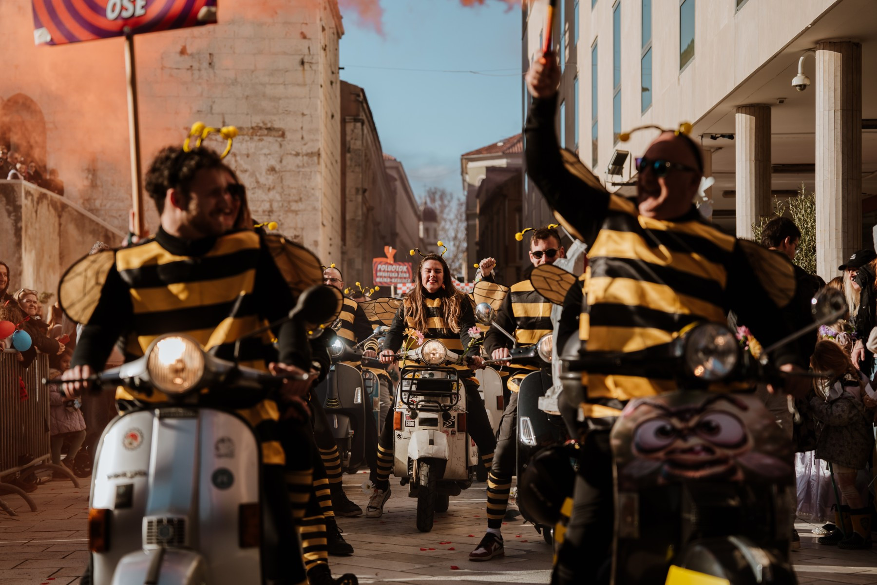 Članovi Vespa kluba Zadar zujalli su kao ose po trgu, karnevalska udruga Puntamika predstavila se kao Romkinje, lije iz Aenone Nin dovele su sobom plastične kokoši, dok je skupina s Poluotoka snažnom simbolikom prikazala što znači biti Hrvatska žena – majka – kraljica.