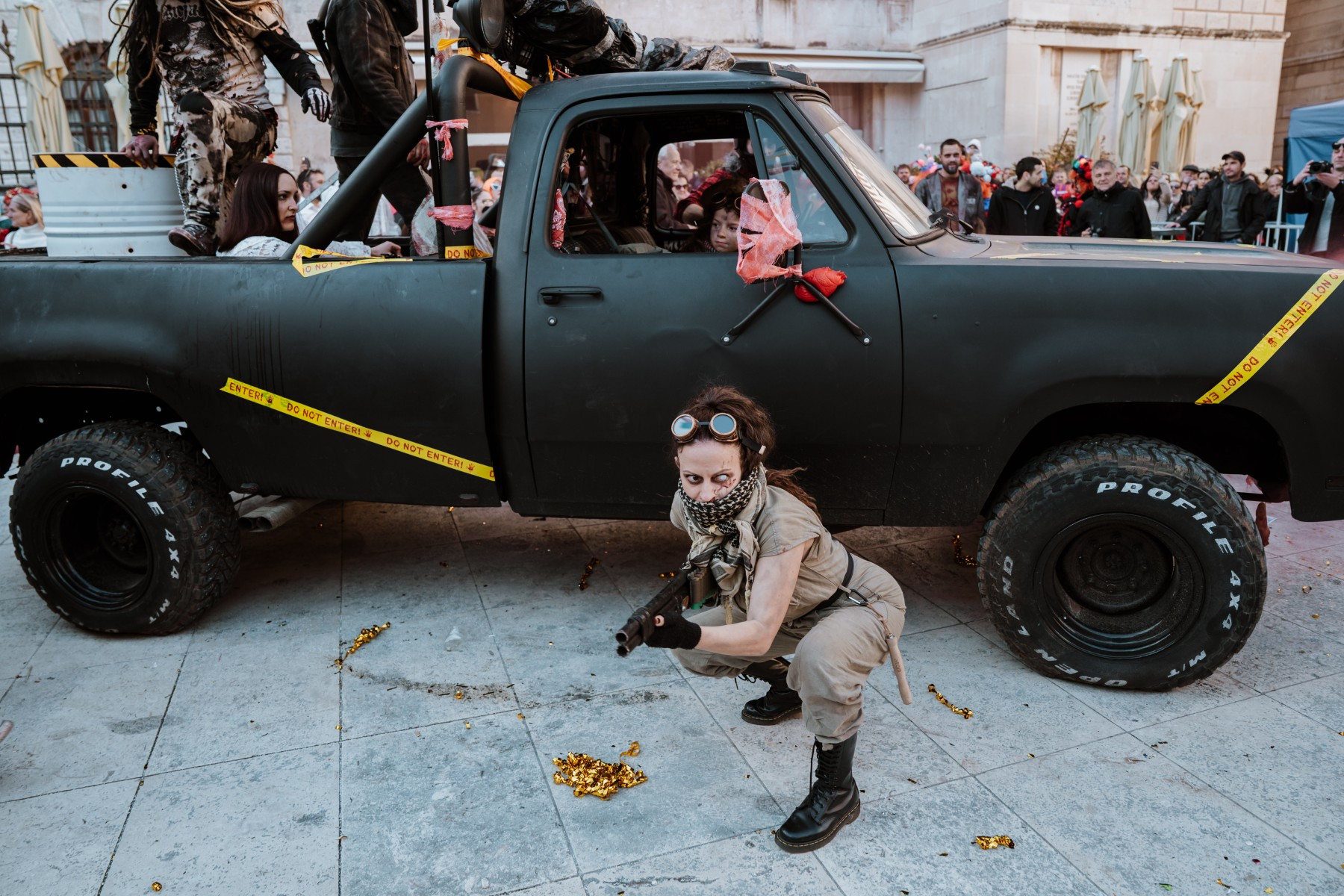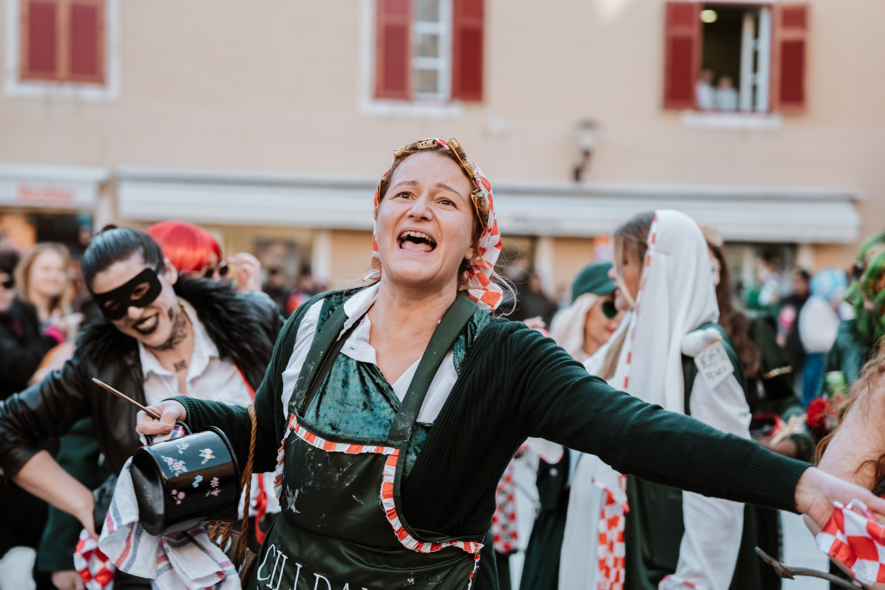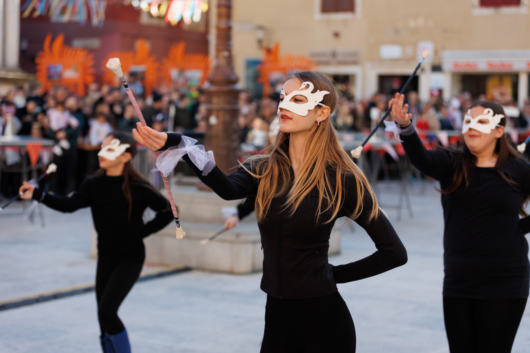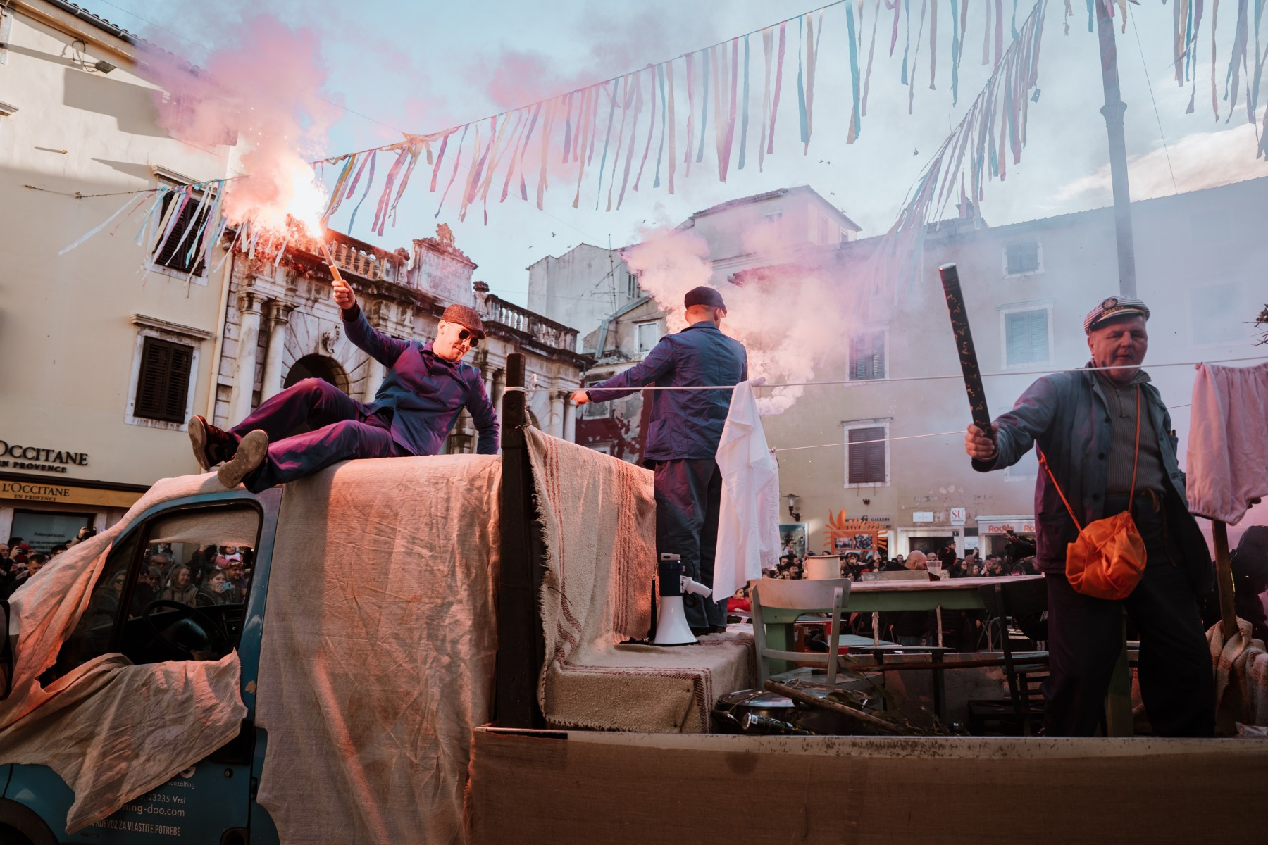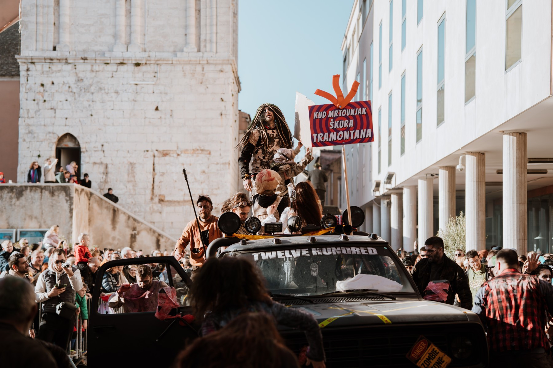 Članovi Vespa kluba Zadar zujalli su kao ose po trgu, karnevalska udruga Puntamika predstavila se kao Romkinje, lije iz Aenone Nin dovele su sobom plastične kokoši, dok je skupina s Poluotoka snažnom simbolikom prikazala što znači biti Hrvatska žena – majka – kraljica.