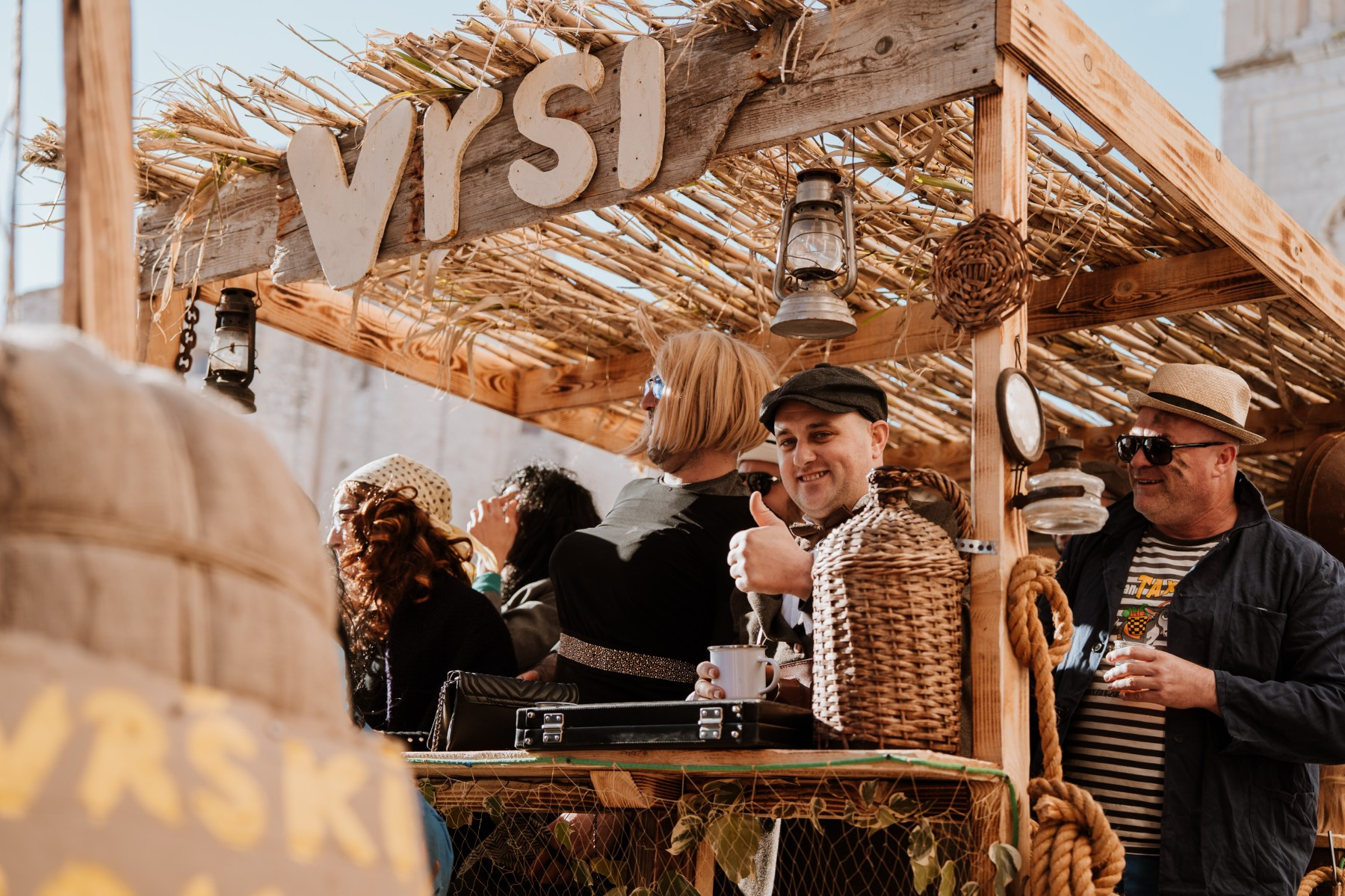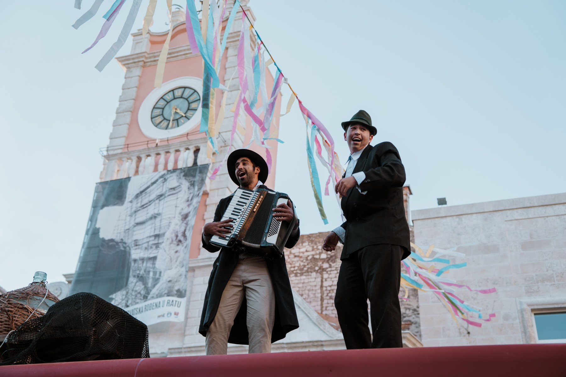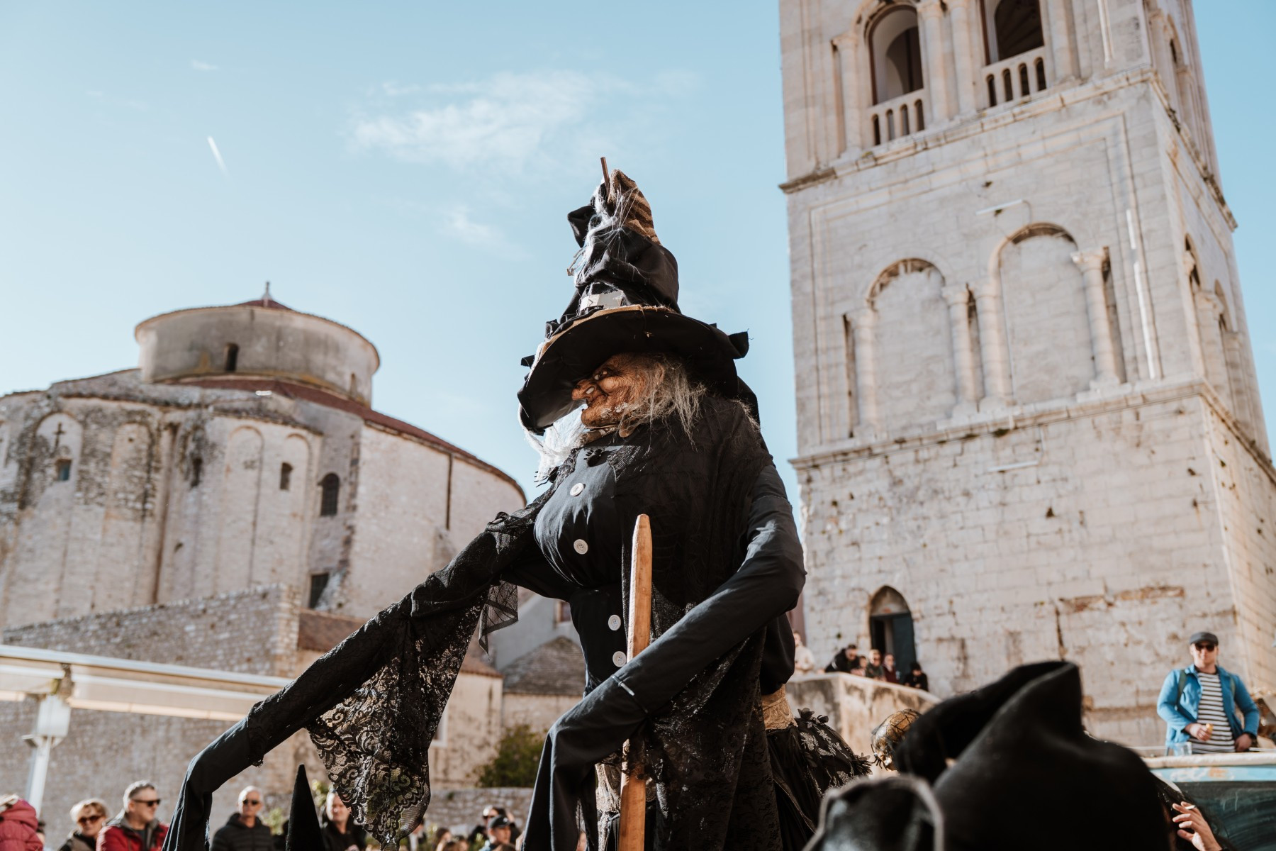 Na pozornici pred zgradom vijećnice palo je i prvo vjenčanje veselih svatova sa Stanova koji su sa sobom doveli svećenika, ali i Maju Šuput koja zvuči bolje nego prava. Pravi show napravila je ekipa iz Vrsi čije je Vrime munještine donijelo i vrške štrige i božicu mora, ali i cijeli pub koji se otvara kraj crkve. Sa stolovima i ekipom koja na njima igra na karte. Doveli su čak i svog meštra tako da je čak i Štorić mogao malo predahnuti. Nakon zombija iz KUD-a Mrtovnjak i Škure tramontane, povorku su zaokružile maškare iz Pakoštana koje na trg dovezao rasklimani autobus firme Krstić, naravno uz legendarni zvuk iz filma „Ko to tamo peva”.