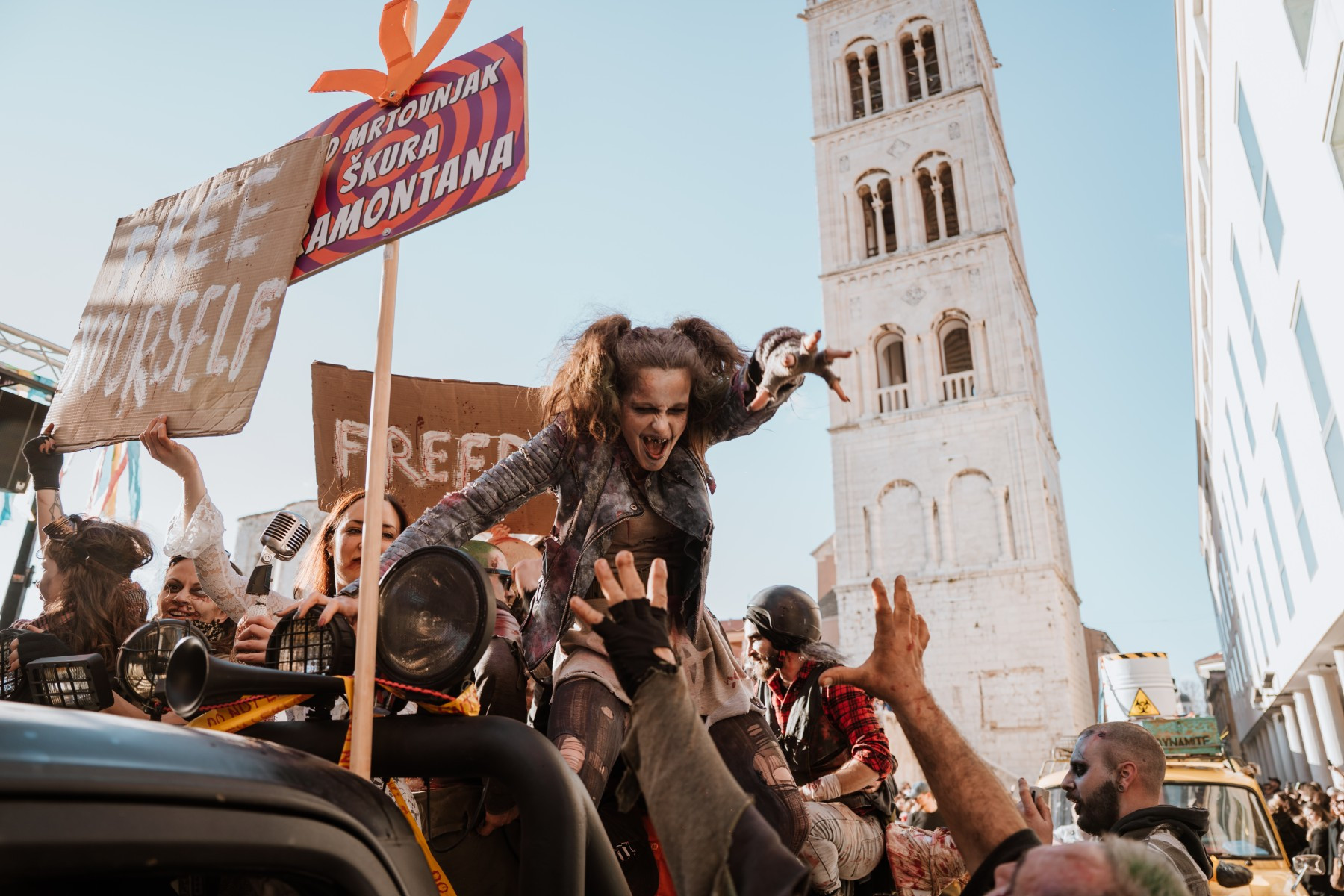 Vesela maškarana povorka uputila se ove nedjelje od Branimira preko mosta, duž Kalalarge sve do Narodnog trga gdje je danas održano finale zadarskog karnevala. A tamo ih je dočekao strogi ocjenjivački sud sklon potkupljivanju i malverzacijama te novi gradonačelnik Ivo Muzika čija je vladavina, otkako je preuzeo ključeve grada, naprosto oduševila i opravdala sva očekivanja. Korupcija je nikad veća, mulci s romobilima gaze penzionere po Bulevaru kako bi osvojili nadasve primamljive nagrade, skoro onakve za kakve se danas natjecalo natjecalo i 13 maškaranih skupina pred brojnom publikom. A bilo je tu svega. Zadarske mažoretkinje unijele su dašak elegancije kao Venecijanske maske plešući tradicionalni stari hrvatski ples mažoret, dok su njihove kolegice iz Benkovca zaigrano mijaukale kao mačke, a one pak iz Gospića razveselile publiku kostimima popularnih Malaca.
