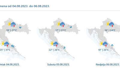 Danas pretežno sunčano i vruće. Uz jači razvoj oblaka lokalno poneki pljusak i grmljavina, osobito u gorju i na sjevernom Jadranu. Vjetar slab do umjeren jugozapadni,...